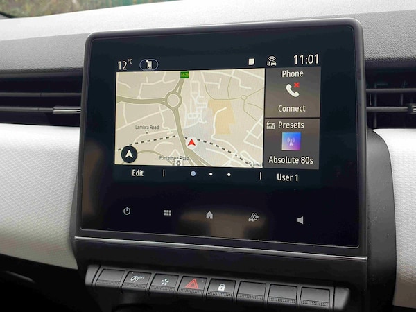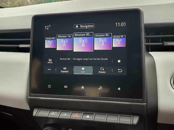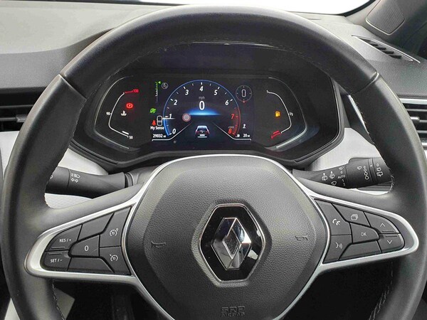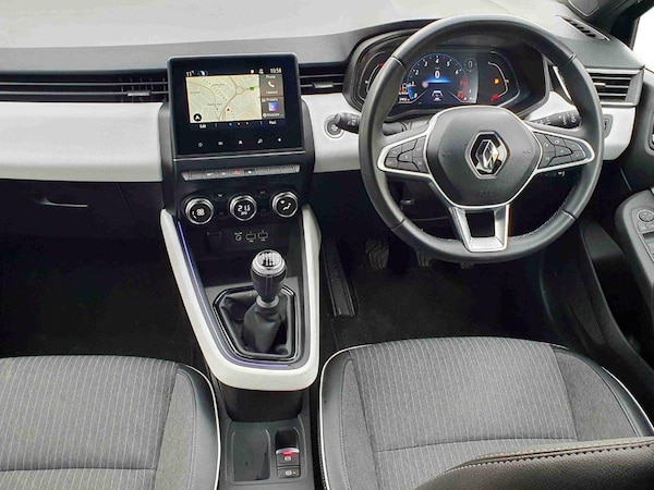 ..7'' TFT colour instrumental display, Cruise control + speed limiter, E-call, Easy link navigation with 7'' touchscreen+4x20W amplifier+FM DAB double tuner, sound auditorium, 2xUSB/1xjack/bluetooth, smartphone integration plus, Eco mode driving function, Gear change indicator, Lane departure warning system, Lane keep assist, Over speed prevention, Rear parking sensors, Rear view camera, Traffic sign recognition, Trip computer, Variable assistance electric PAS, Auto dimming rear view mirror, Auto light control and rain sensing wiper, Automatic headlights, Body colour door handles, Body colour door mirrors, Body coloured bumpers, Body coloured rear spoiler, Chrome exhaust tailpipe, Chrome front grille, Chrome insert on lower side doors with Clio embossing, Drivers one touch window with anti-pinch feature, Electric adjustable/heated/folding door mirrors, Electric front windows, Electric rear windows, Exterior rear hidden door handles, Full LED front and rear headlamps integrating daytime running lights at the front and rear, LED front fog lights, LED Roof light, Rear fog lights, Rear side wing doors, Rear wiper, Third brake light, Tinted rear windows, Variable speed on front windscreen wipers, 12V Accessory socket, 3 rear height adjustable headrests, 3 seat bench in 2nd row, 3D Fabric velvet upholstery, 6.2L front glovebox, 60/40 split rear seats, Air recirculation control, Auto climate control, Black headlining, Dark interior roof lining, Driver's seat height adjustment, Front cupholders, Front door storage bin, Height adjustable front headrests, Height/reach adjust steering wheel, Isofix system on outer rear seats, Leather steering wheel, Multi function steering wheel, Multisense including ambient lighting and selectable drive modes, Pollen filter, Single front passenger seat, System for Restraint and Protection SRP-front seats, Vision grey interior detail includes light grey on doors, lower part of dash and gear stick, Parking Pack - Clio, Storage pack - Clio, 3 point seatbelts on all rear seats, ABS+EBD+Brake assist, Active emergency braking system, Curtain airbags, Distance warning alert, Driver and passenger front and side airbag deactivation, Driver/Front Passenger airbags, Electronic parking brake with auto hold, ESC - Electronic Stability Control + traction control, Front side airbags(head+thorax), Height adjustable driver's seatbelt, Hill start assist, Manual rear child locks, Seatbelt warning, Tyre pressure warning, Central door locking,