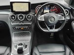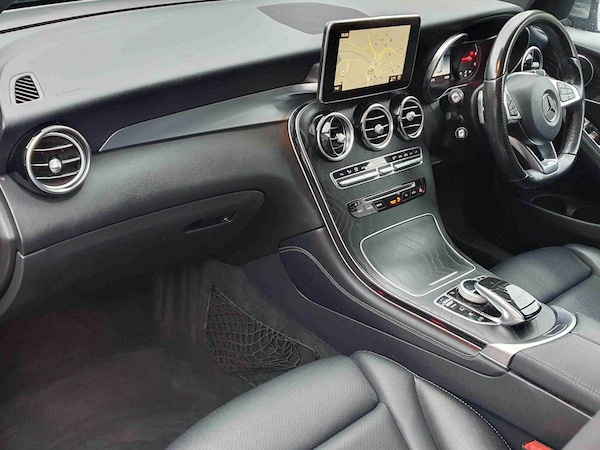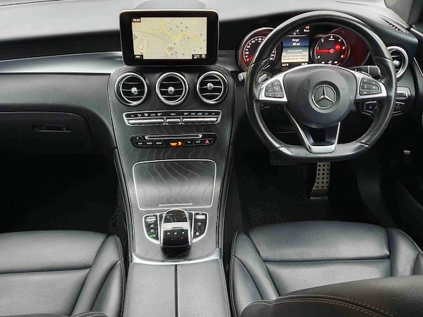 ..7'' colour screen, Active park assist with parktronic system, Attention assist, Bluetooth interface for hands free telephone, Collision prevention assist plus, COMAND online nav with colour display, radio/CD/DVD/MP3, SD card, 10GB music, Emergency Call system, speed limit assist, linguatronic voice control, Crosswind Assist, DYNAMIC SELECT with a choice of driving modes (ECO, Comfort, Sport, Sport+ and Individual), Instrument cluster with 5.5-inch TFT multi-function display, Multi function trip computer, Outside temperature gauge, Power opening/closing tailgate, Remote boot release, Speed sensitive steering, Touch pad controller for infotainment system, Traffic sign recognition, Diesel particulate filter, Burmester surround sound system, DAB Digital radio, USB connection, Adaptive brake lights, Aerodynamic rear spoiler, AMG bodystyling, Automatic headlights, Body coloured bumpers, Chrome exterior trim, Electric panoramic sunroof with sunblind, Electric windows one touch open/close, Electrically adjustable and heated door mirrors, Exhaust tailpipe finisher, Heated windscreen washers, LED daytime running lights, LED rear lamps, Privacy glass (to rear of B post), Rain sensor windscreen wipers, Range adjustable headlights, Rear wiper, Tinted glass all round, 2 cupholders in front centre console, 2 way rear head restraints, 3 spoke flat bottom AMG steering wheel in nappa leather, 4 way adjustable front head restraints, 4 way electric lumbar support for driver and front passenger, 40:20:40 split folding rear seats, Ambient lighting, AMG floor mats, AMG sports seats, Auto Mercedes-Benz child seat recognition sensor, Automatic climate control, Black roof lining, Dividing net - rear, Electric front seat height adjustment, Front door sills with Mercedes Benz lettering, Gearshift paddles, Heated front seats, Height/reach adjustable steering column, Illuminated glovebox, Multifunction steering wheel, Rear top tether child seat ISOFIX attachment, Sports pedals with stainless steel surfaces and rubber studs, Sunvisors with illuminated vanity mirrors, Easy-pack load compartment cover, Interior lighting pack - GLC, Memory pack - GLC, Mirror pack - GLC, Storage pack - GLC, 3 rear 3 point seatbelts, ABS with Brake Assist, Active bonnet, Adaptive brake system, Child proof door locks, Drivers knee airbag, Dual stage driver/passenger airbags, Electronic parking brake, ESP with ASR, Front and rear seatbelt reminder, Front passenger seat occupancy sensor, Front side airbags,