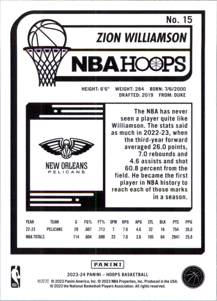 2023-24 Hoops #15 Zion Williamson - BSK