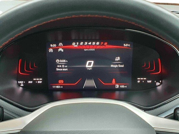 ..'Lights On' Reminder warning buzzer, 8'' Digital cockpit, 9.2'' touchscreen navigation system with type C USB socket, Voice control and DAB/AM/FM radio, Auto start and stop system, Bluetooth audio streaming with handsfree system, Digital clock, E-call, Full link smartphone integration with mirror link, wireless apple carplay, Google android auto + USB Type C cable for apple and android devices, Lane assist, Low fuel warning light, Outside temperature gauge, Power Steering, Seat connect with safety, service, remote and online, SEAT drive profiles and ECO function, SEAT logo boot release, Speed limiter, Trip computer, Sports suspension, Auxiliary input socket, Radio/MP3 player, SD card slot, Steering wheel mounted controls, Anti theft roof antenna, Auto dimming rear view mirror, Automatic rain sensing wipers, Black door mirrors, Body colour bumpers, Body colour door handles, Brilliant black window surrounds, Dark tinted rear windows, Electric adjustable/heated/folding door mirrors, Electric front windows, Electric headlight adjustment, Electric rear windows, Front/rear fog lights, FULL LED automatic headlights with dynamic headlight range control, coming and leaving home, LED daytime running lights, LED tail lights, Rear roof spoiler with FR twin exhausts, Rear side wing doors, Rear wiper, Third brake light, 3 seat bench in 2nd row, 60/40 split folding rear seat, Ambient interior lighting, Chrome detailing and black headlining, Cloth upholstery, Dual zone climate control with combination filter, Front courtesy lights, Front cupholders x 2, Front reading lights, Gear shift indicator, Glovebox, Height adjustable front and rear headrests (five), Height adjustable front seats, Height/reach adjust steering wheel, Illuminated air vent surrounds, Illuminated boot, Instrument lighting with brightness control, Isofix, Leather multifunction flat bottomed sports steering wheel, Passenger sunvisor, Single front passenger seat, Sports seats, Sunvisors with mirror and driver side card holder, 3 point seatbelts on all 3 rear seats, ABS, Active front headrests, Child locks on rear doors, Electronic stability control, Energy recovery system, Front assist forward collision warning and autonomous emergency braking, Front driver and passenger side airbags with curtain airbag and front passenger airbag deactivation, Hill hold control, Multi-Collision braking, Seat belt reminder for front and rear seats, Tiredness recognition system, Tyre pressure monitoring system, Electronic