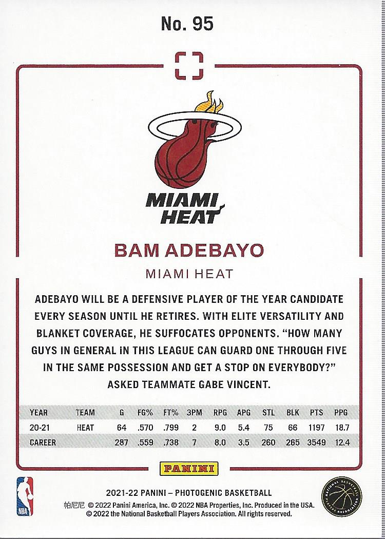 2021-22 Panini PhotoGenic #95 Bam Adebayo - BSK