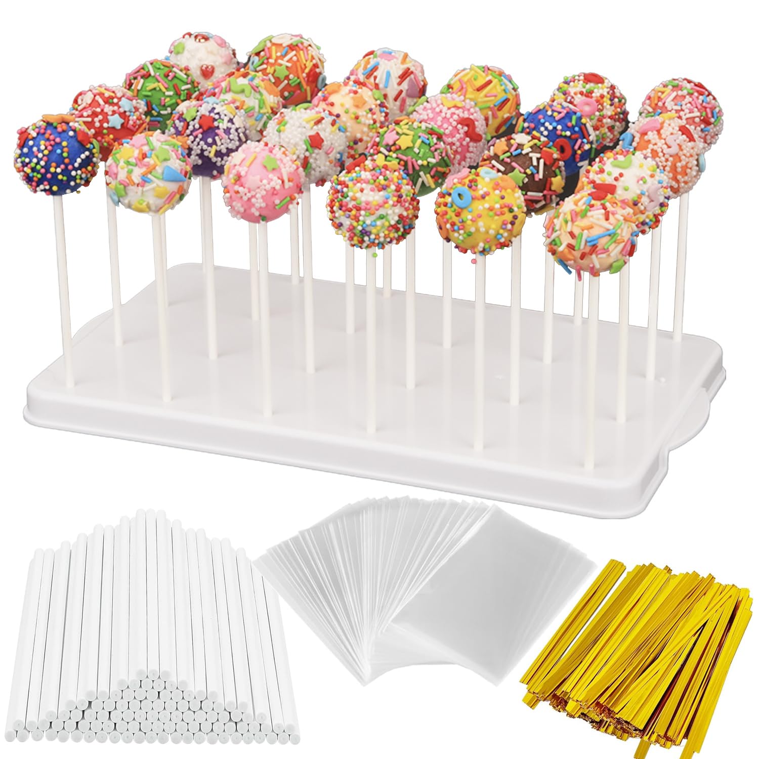 - COST-EFFECTIVE CANDY POP HOLDER SET: Contains 1 pcs cake pop holder stand, 100 pcs candy sticks, 100 pcs cake pop bags, 100 pcs gold twist ties. We have prepared all the materials for you to make