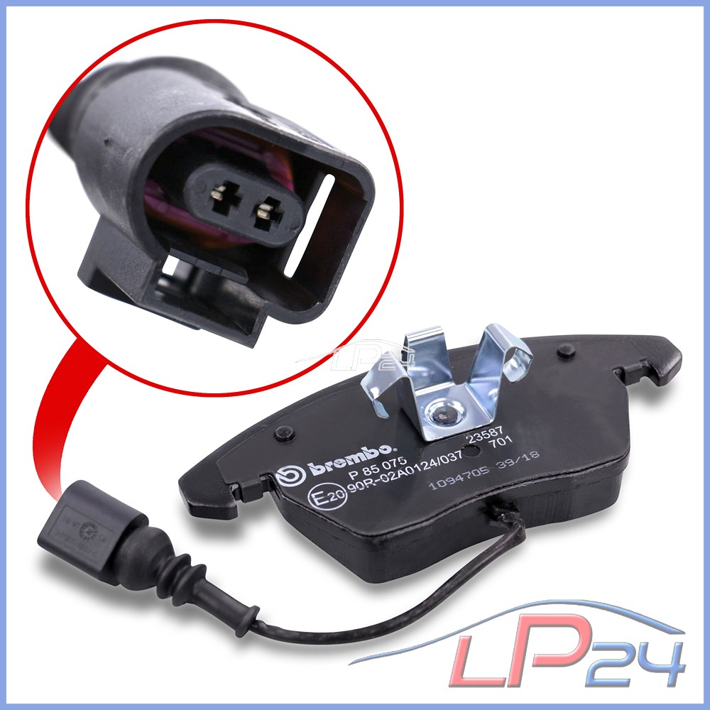 1x jeu (4 pièces) de plaquettes de frein ORIGINAL BREMBO avec contact d'avertissement d'usure (système de freinage ATE - TEVES) essieu avant