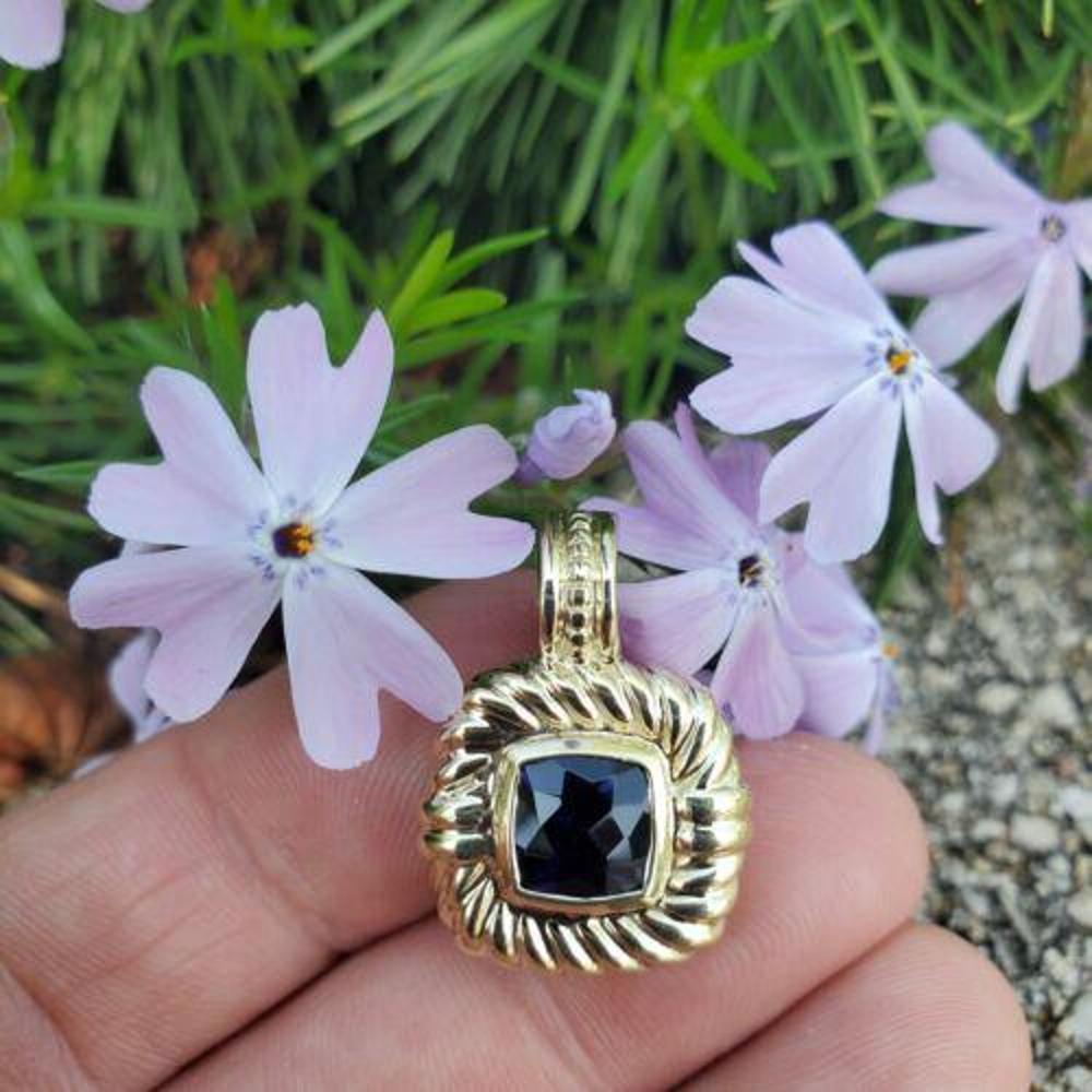 DAVID YURMAN ALBION 14K GOLD IOLITE CABLE ENHANCER PENDANT Vintage Cushion.