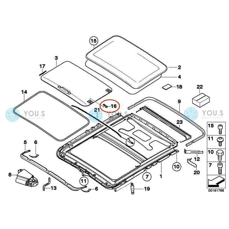 YOU.S Original Schiebedach Reparatur Gleitstück Clip für BMW - 54137134516