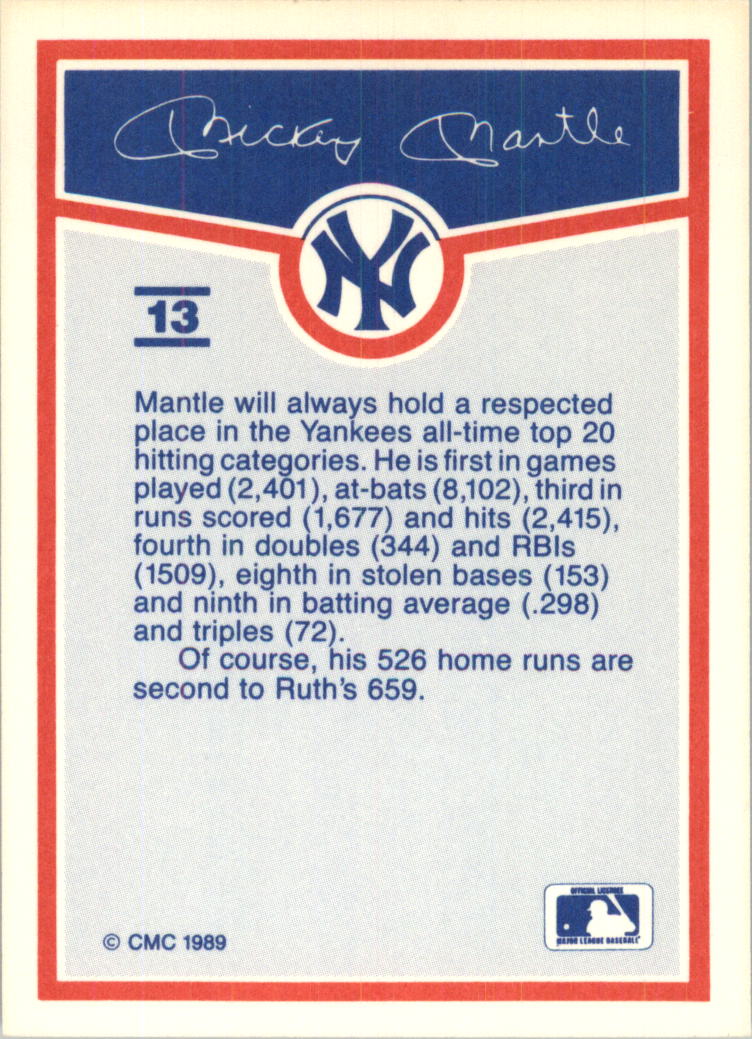 1989 CMC Mantle #13 Mickey Mantle Starting to run to first base - BB