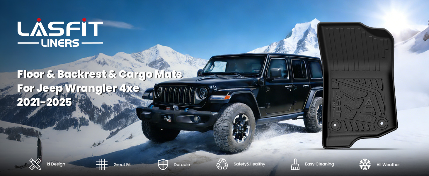 LASFIT Floor Mats & Cargo Liner with Backrest Mat for Jeep Wrangler 4xe 2021-2025 Custom Fit All Weather Protector TPE Easy Clean Floor Liners Trunk Mat with Seatback Cover Set Black