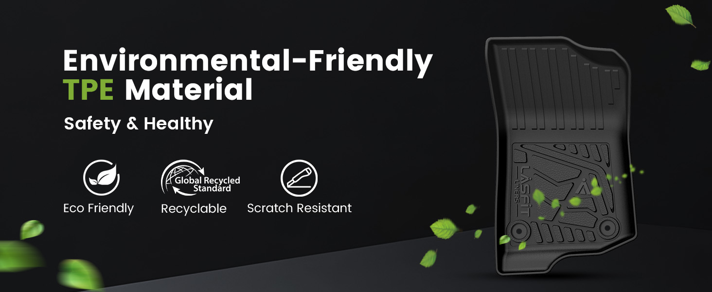 LASFIT floor mats are made from premium elastic TPE (Thermoplastic Elastomer), offering a soft touch and refined finish. Designed for durability, they remain stable under high temperatures, provide excellent anti-slip performance, and are recyclable.