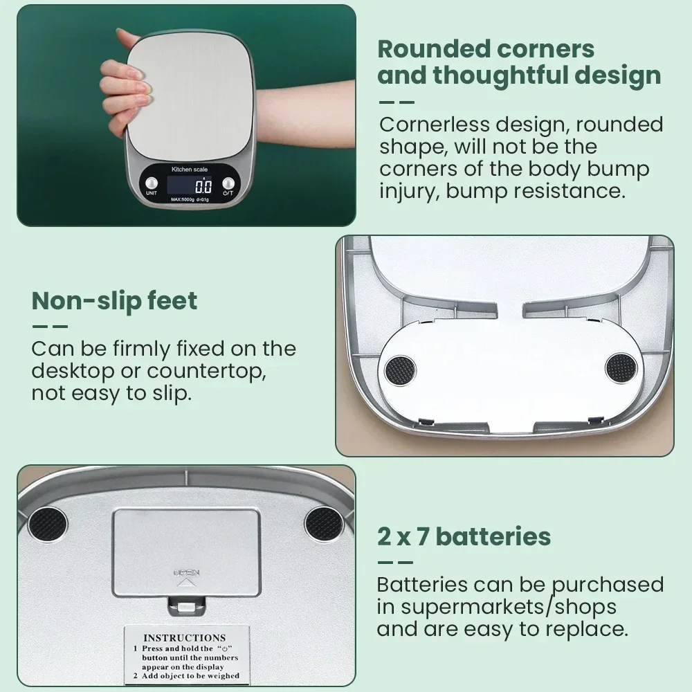 1.The package does not contain batteries, which require the installation of three No. 7 batteries for use inside the kitchen scale.
