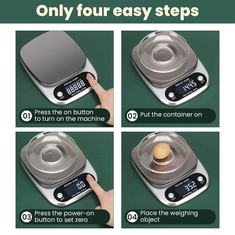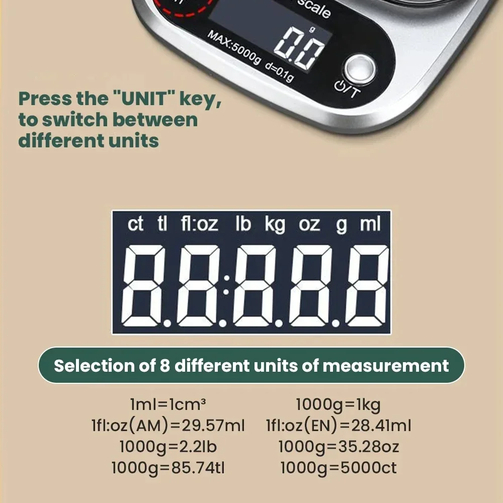4. The product can switch weighing units: g, Ib: OZ, ml, fl: oz