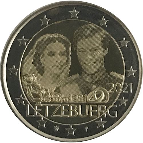 Münze zur Feier der 40. Ehe von Großherzog Heinrich mit Großherzogin Maria Theresia (1981-2021).