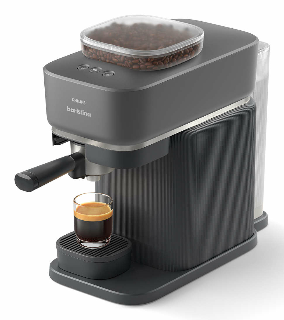 Hou je van echte koffie maar heb je een hekel aan gedoe? Dan is de Baristina espressomachine iets voor jou. Giet je favoriete koffiebonen erin, swipe de hendel en geniet van een ongelofelijke espresso of Lungo. Hij maalt de bonen automatisch voor een heerlijk, intens aroma. Hij stampt de portafilter perfect aan en brouwt met hoge druk, zodat je koffie smaakt net zoals een barista hem heeft gemaakt. Ontdek jouw voordelen van de Philips Baristina Espresso machine:Krachtig en stil brouwenDe ingebouwde koffiemolen zorgt voor het juist malen van de bonen, terwijl de druk van 16 bar je in staat stelt om espresso van cafekwaliteit te bereiken. Het hele proces van espresso zetten duurt minder dan 60 seconden, waardoor je snel van een heerlijke koffie-ervaring kunt genieten. Bovendien is de Philips Baristina opmerkelijk stil. Neem je beste shotKies tussen intense espresso en volle lungo. Pas de sterkte en hoeveelheid koffie aan naar jouw voorkeur. Compact formaatHet compacte formaat van de Philips Baristina Espresso Machine maakt het mogelijk om hem op elk keukenaanrecht te plaatsen. Je hoeft niet langer veel ruimte op te offeren om thuis van heerlijke koffie te genieten. Een enkele swipe voor een echte espressoDraai het handvat en laat Philips Baristina de rest doen. Het eenvoudige ontwerp, dat doet denken aan traditionele espressomachines, maakt het bedienen van de Philips Baristina Espresso Machine gemakkelijk en intutief. Je hoeft de koffie niet zelf te malen of de portafilter aan te drukken - de machine doet het voor jou, waardoor je tijd bespaart en rommel voorkomt. Eenvoudig schoon te makenKlaar? Druk op de knop om de koffiepuck eruit te laten springen en de koffiedik weg te gooien. Geen getik, geen probleem. Spoel gewoon de portafilter af of veeg hem schoon met een doek om schoon te maken. Het ontbreken van kleine onderdelen en verborgen compartimenten maakt het gemakkelijk om het aanrecht netjes te houden. Bovendien zijn de lekbak en het deksel vaatwasmachinebestendig. heeft contextmenu SpecificatiesEnergie