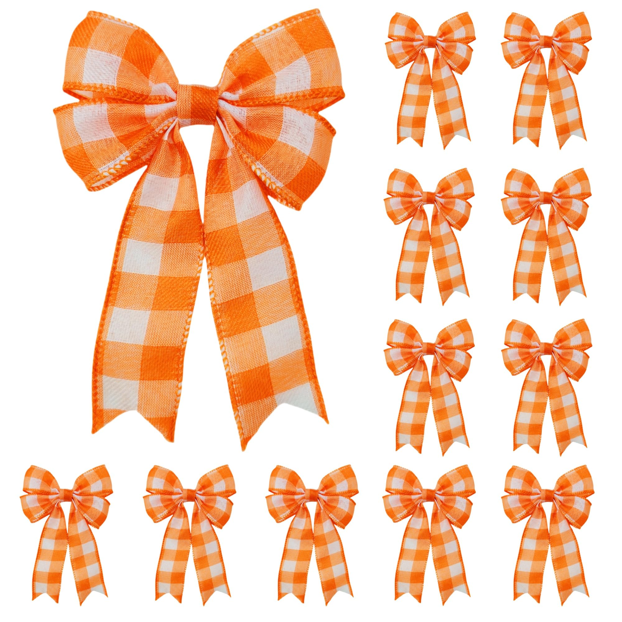 Elevate your celebrations with these enchanting orange and white buffalo plaid bows that blend vintage charm with contemporary style. Measuring 5"x7", these wired burlap bows feature the season's most sought-after color combination - a soft orange and crisp white tartan check Wedding Ready - Perfect for rustic-chic weddings, bridal showers and anniversary celebrations Holiday Magic - Transforms Christmas trees, stockings and holiday tablescapes Seasonal Flexibility - Works for Valentine's Day, Easter, Thanksgiving and winter festivities Instant Farmhouse Charm - Adds warmth to modern farmhouse interiors and party decor Reinforced Wired Edges for perfect shaping every time Fade-Resistant Colors that stay vibrant throughout the season Eco-Conscious Materials - Sustainable burlap that's both beautiful and responsible Multi-Purpose Design - Use as gift toppers, wreath accents or curtain tiebacks