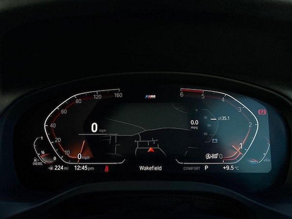 ..Active Guard incl speed limiting and lane departure functions with auto steering, and front collision warning with brake intervention, Attentiveness assist, Auto start-stop, Automatic tailgate operation, BMW Live Cockpit Professional sat nav system including 10.25'' high resolution display and Intelligent Voice Assistant, BMW Online services, BMW professional navigation with 10.25'' touch display, BMW remote services, BMW Teleservices, Brake pad wear indicator in front and rear, Check Control warning system for monitoring of lights and door/luggage compartment open warning, Condition based service, Exterior temperature gauge, iDrive Controller with 8 favourite buttons, Instrument cluster with speedometer with mph readout, tachometer, fuel gauge and oil temperature gauge, Keyless ignition with push button start, Lights on warning, On board computer, Optimum shift indicator, Personal Profile, RTTI - Real time traffic information, Run flat indicator, Service interval indicator, Speed limiter, Trip computer, Variable sports power steering, Diesel particulate filter, Drive performance control with ECO PRO comfort + sport mode, M sport suspension, Performance Control, Bluetooth audio streaming, DAB Digital radio, Acoustic glass, Body colour door handles, Body colour mirror caps, Body colour roof mouldings, Body coloured bumpers, Chrome kidney grille with black vertical slats, Direction indicator side lights integrated exterior mirrors, Dual chrome exhaust, Dynamic brake lights, Exterior mirrors - electrically folding with anti-dazzle, Fingertip control / anti-trap function on electric window, Front and rear bumper system, Front and rear electric windows, Green tinted heat insulating glass, Heated windscreen washer jets, High gloss black door sill finishers, Interior rear view electrochromatic mirror with automatic anti dazzle function, LED daytime running lights, LED fog lights, LED High level third brake light, LED Indicators, LED tail lights, M aerodynamic bodystyling, Rain sensor including auto headlights activation, Shark fin antenna, Visible VIN plate, Welcome light carpet, Windscreen wipers with adjustable interval, 3 zone automatic air conditioning, Ambient lighting, Anthracite headlining, Bottle holders integrated into door, Cupholders in centre console, Driver/passenger sunvisors with ticket holders + illuminated vanity mirrors, Front and rear door armrests, Front centre armrest with storage compartment, Front cupholders x 2, Front footwell lights,