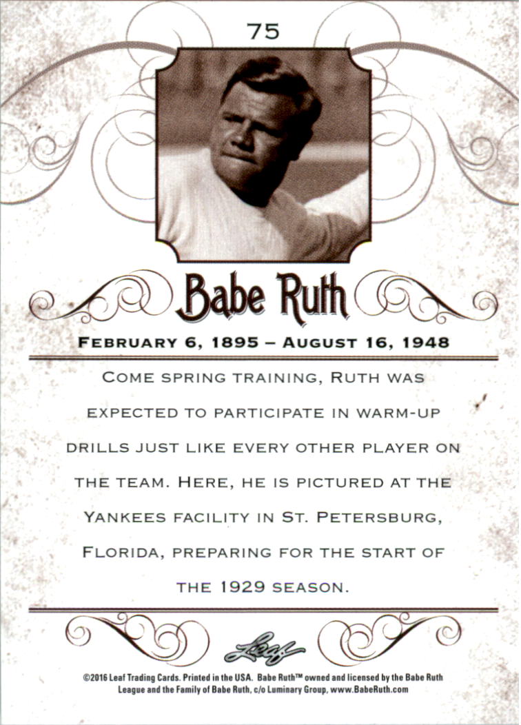 2016 Leaf Babe Ruth Collection #75 Babe Ruth - BB