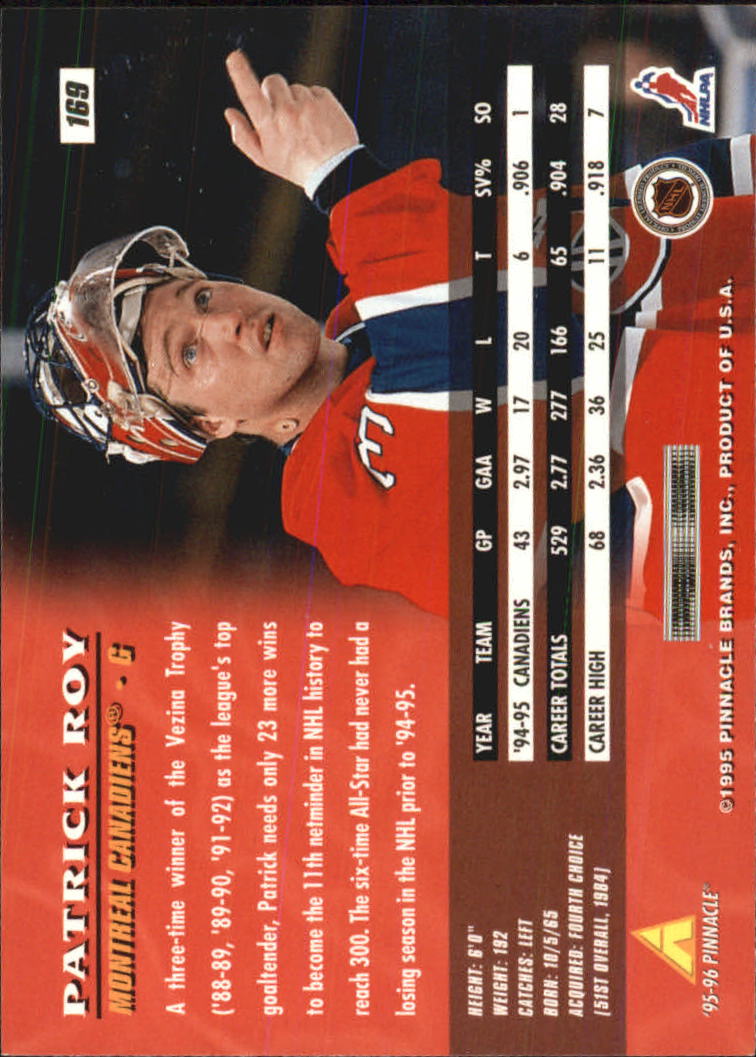 1995-96 Pinnacle #169 Patrick Roy - HKY
