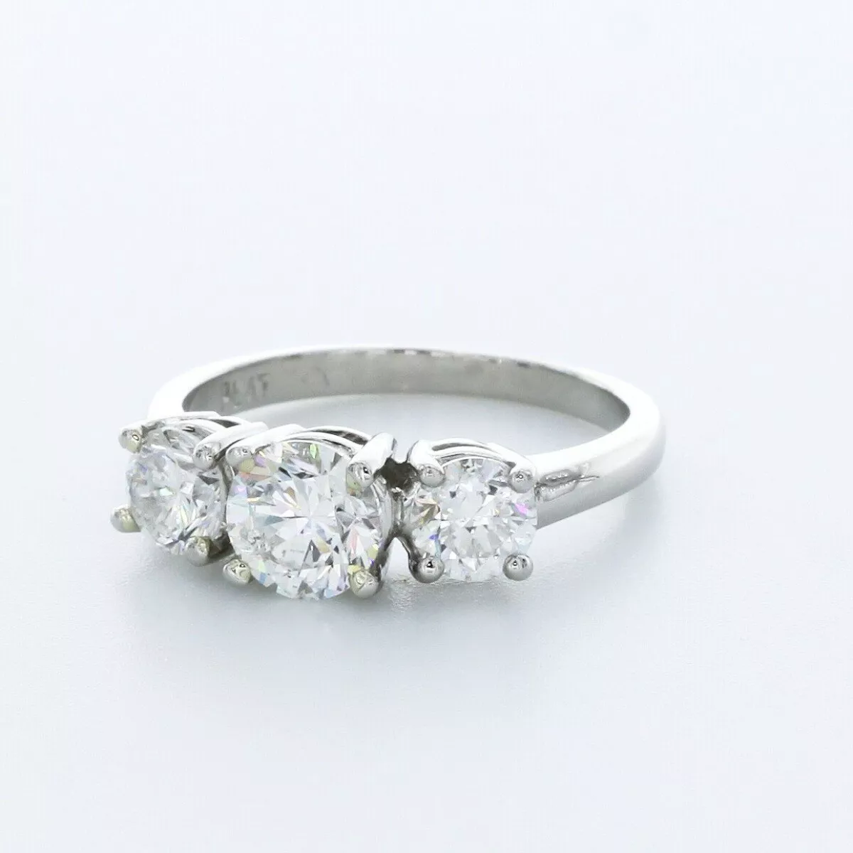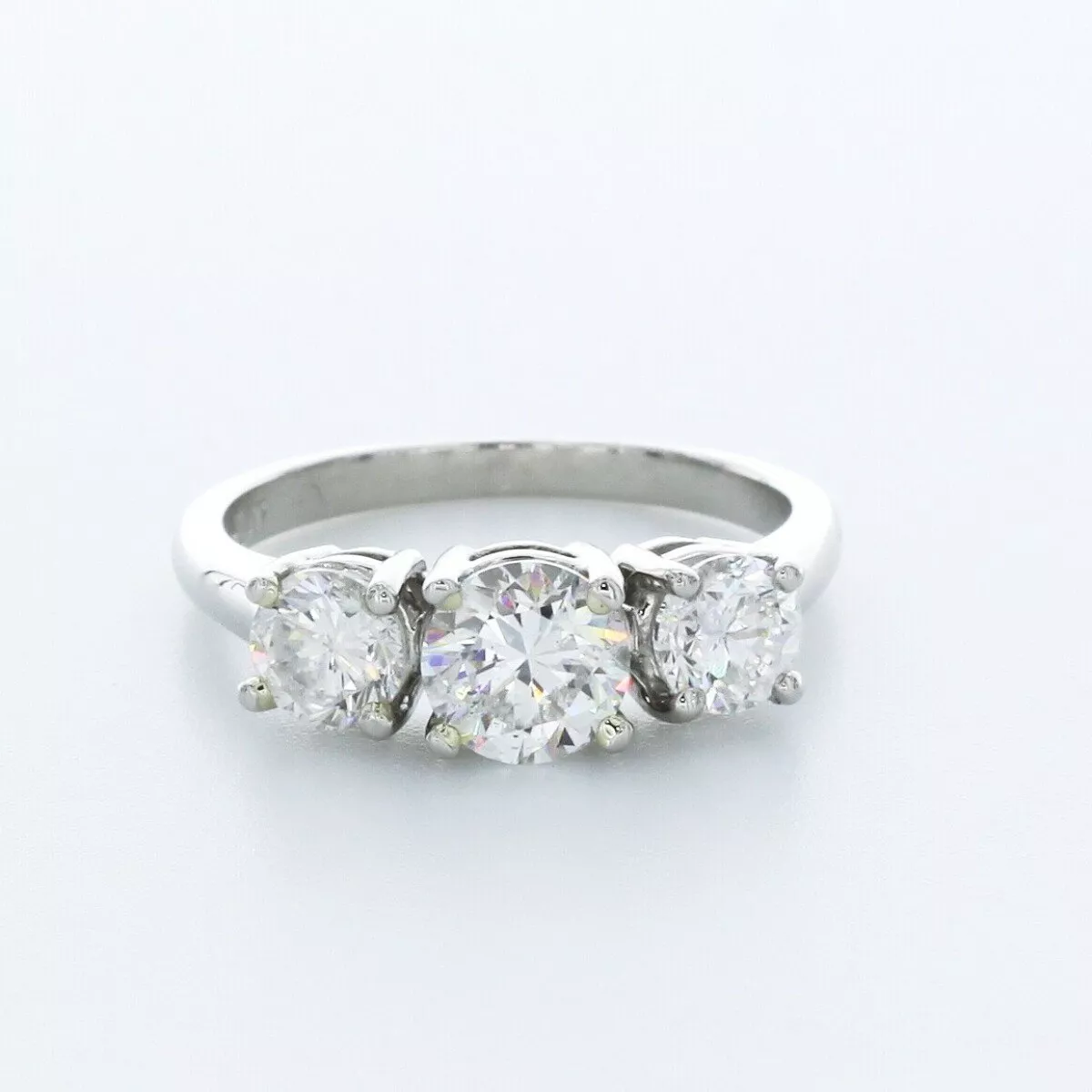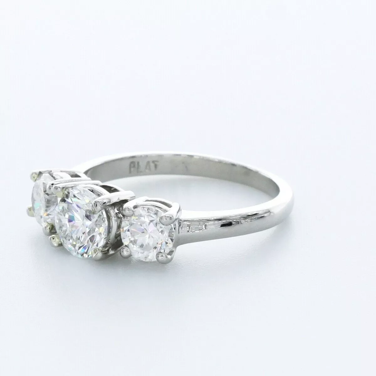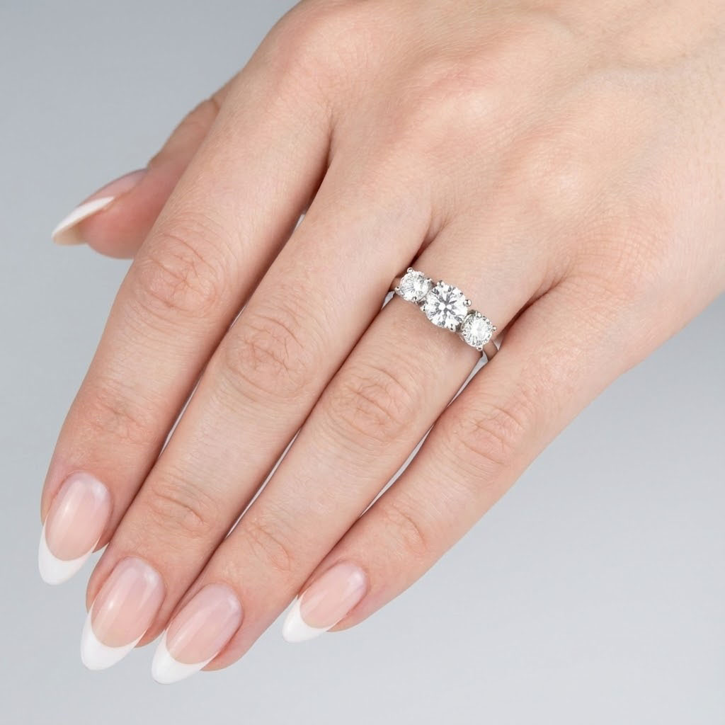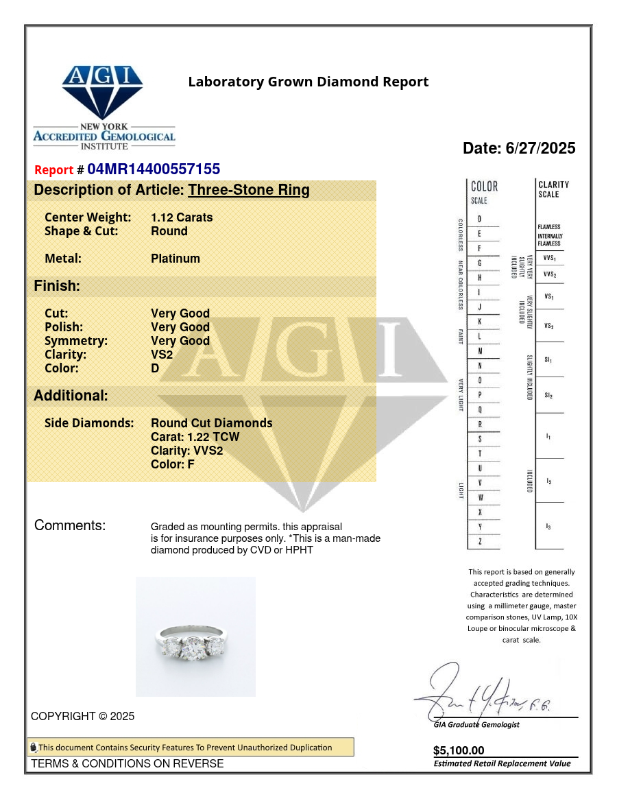 Solid Platinum Three Stone Engagement Ring AGI Cert 2.34 CT Round Lab-Grown Diamond D VS2