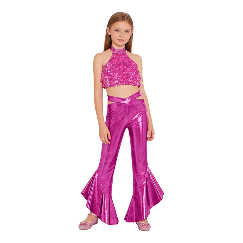 Made from a blend of polyester, PU, and spandex, the outfit is stretchy and comfortable, allowing for free movement during dance performances.