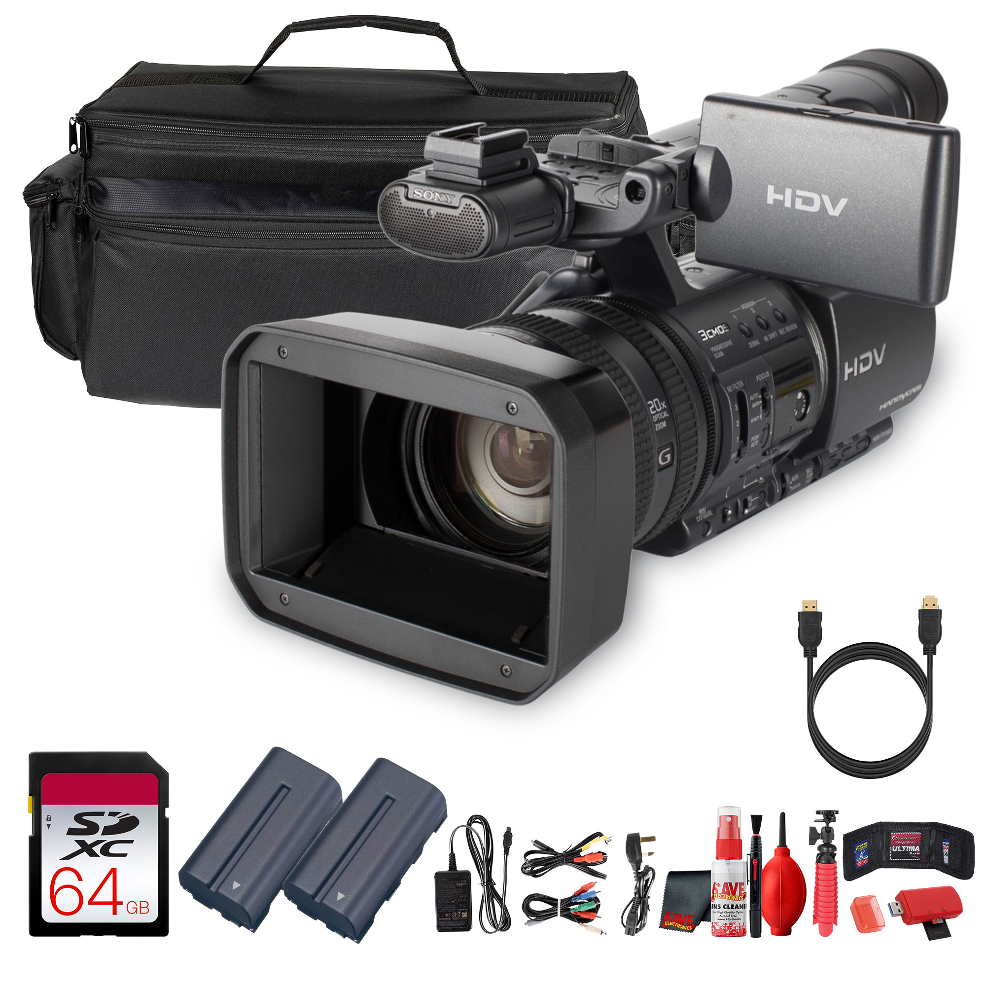- Items Include: Sony HDR-FX1000E PAL HDV Handycam – 3-CMOS HD Video, 20x Optical Zoom, Pro-Style Controls for Events & Documentary Work, Large Case, LED Light, Lens Filter Kit, Replacement Battery, Charger, Cleaning Kit, HD Cable