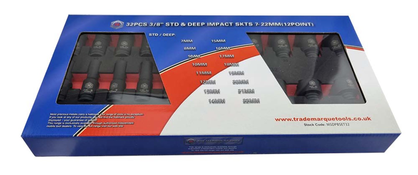 This Britool Hallmark impact socket set is crafted from high-quality Chromium-Molybdenum steel, offering exceptional durability and performance. Designed for heavy-duty tasks, these impact sockets are ideal for use with all 3/8" drive pneumatic air tools and cordless power tools, making them perfect for automotive, mechanical, and industrial applications.