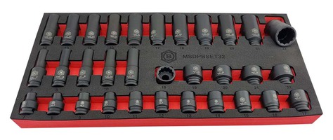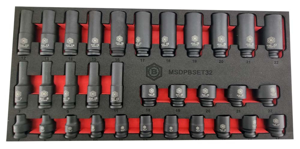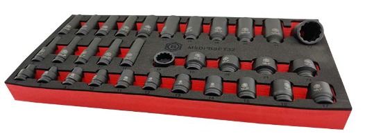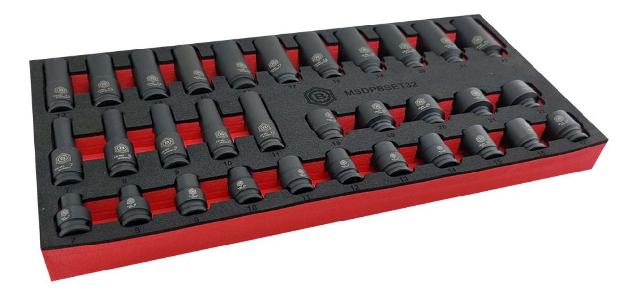 For easy organization and quick access, this impact socket set comes supplied in a tool control EVA foam tray. The tray fits perfectly into a tool chest or roll cab drawer, ensuring your socketry stays organized and readily available for use.
