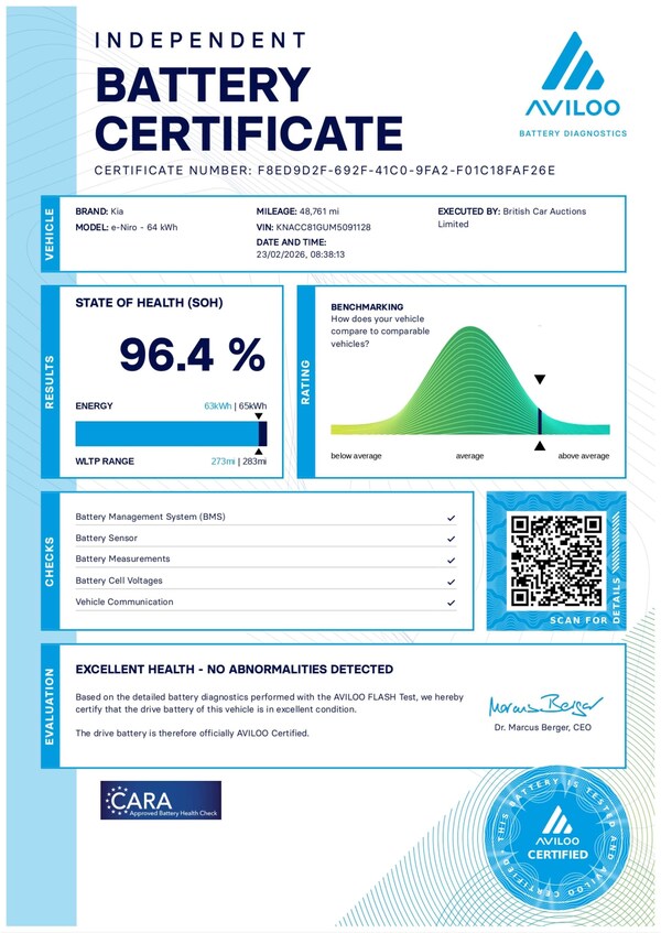 Introducing the Kia Niro 64kWh 4+ SUV 5dr Electric Auto, a sleek and powerful vehicle that is sure to turn heads on the road. With 201 bhp under the hood, this car offers both style and performance in one package.Experience the thrill of driving an electric vehicle with the Kia Niro, which offers a smooth and quiet ride without compromising on power. With its spacious interior and advanced features, this SUV is perfect for both daily commutes and long journeys.Don't miss out on the opportunity to own this impressive Kia Niro. Visit us today to take a test drive and see for yourself why this car is the perfect choice for drivers who demand both style and performance.For peace of mind this vehicle has completed a multi point AA inspection.Competitive finance is also available.We are open 7 days a week and have more than 1500 cars to choose from.All our Euro 4 Petrol and Euro 6 Diesel vehicles meet the ULEZ standard.Vehicle specification can be found below. From time to time vehicles have manufacturer recalls notified. Please read our recall policy on our website for further information. Please be advised that the advertised electric vehicle (EV) listings may experience battery degradation over time, resulting in reduced performance and range compared to the original specifications. Factors such as usage patterns, environmental conditions, and charging practices can contribute to this degradation. While we strive to provide accurate information, the actual battery health and performance of each EV may vary. Customers are encouraged to conduct thorough research and consider the potential impact of battery degradation before making a purchase decision. We recommend consulting with a qualified technician or conducting a battery health inspection for further assessment. This vehicle comes with an AVILOO Battery Health Certificate - the global standard for EV battery testing. Full independent analysis confirms excellent battery condition with detailed State of Health assessment, cell-level checks, and accurate range data. Certificate included with purchase for your complete peace of mind and future resale value.Disclaimer: While every effort is made to ensure the accuracy of vehicle specifications, features, and descriptions, errors and omissions may occur. Specifications and equipment may vary and may not be present on the vehicle at the point of sale. Buyers are advised to confirm all details with the seller before completing a purchase.