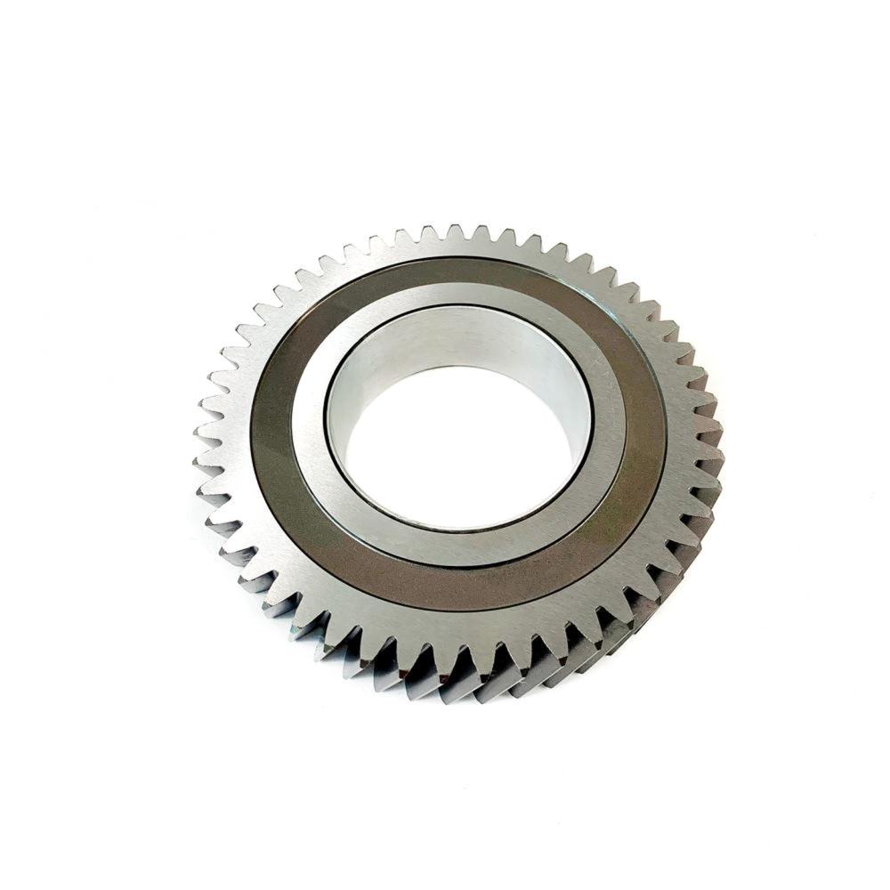 49-tooth UPPER idler gear in the PowerTech 4045/6068 timing gear train. Helical cut. Do NOT confuse with lower idler RE56369 (43T) — different tooth count, different position. Both must be installed correctly for proper valve and injection timing.