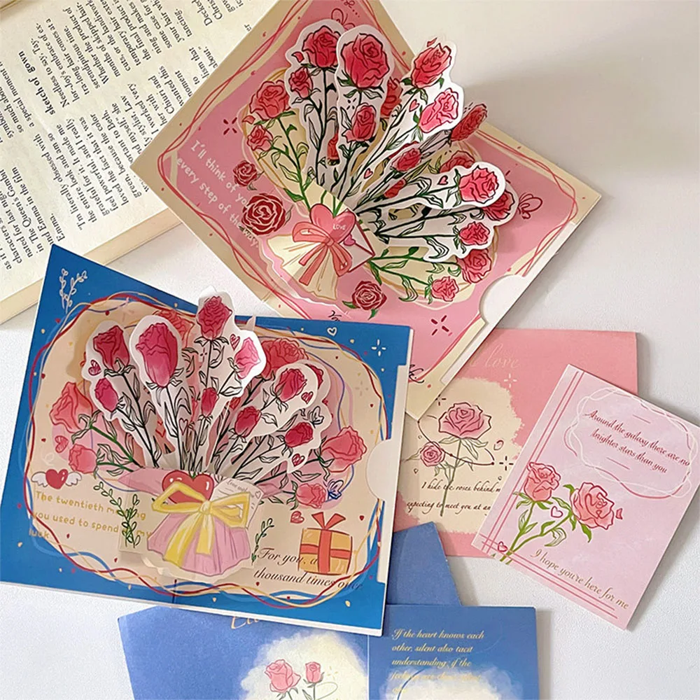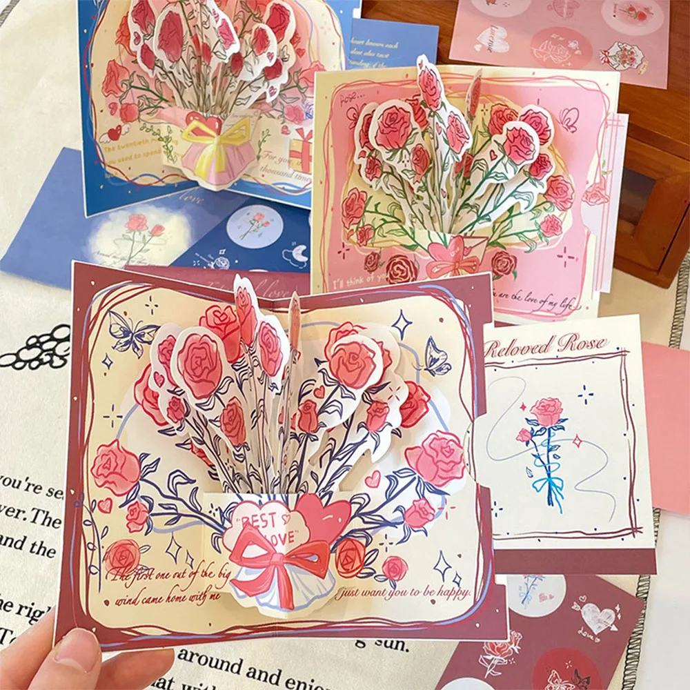 3D Pop Up Rose Greeting Card Romantic Blessing Gift for Birthday Anniversary Valentine's Day Wedding birthday Party Celebration