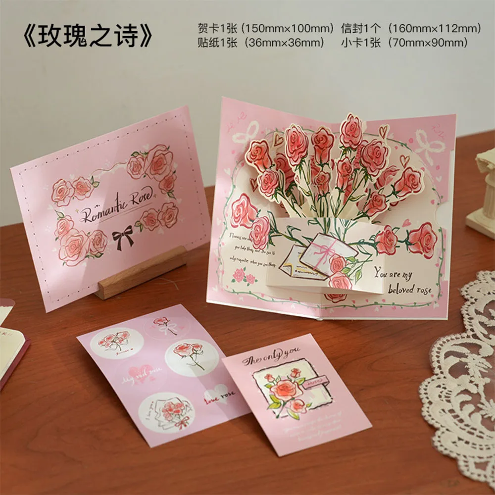 - 【 Design Highlights 】: Adopting three-dimensional paper art craftsmanship, each petal is carefully outlined, and when opened, a three-dimensional bouquet automatically pops up, paired with exquisite bows and gift box patterns, creating a rich visual hierarchy.