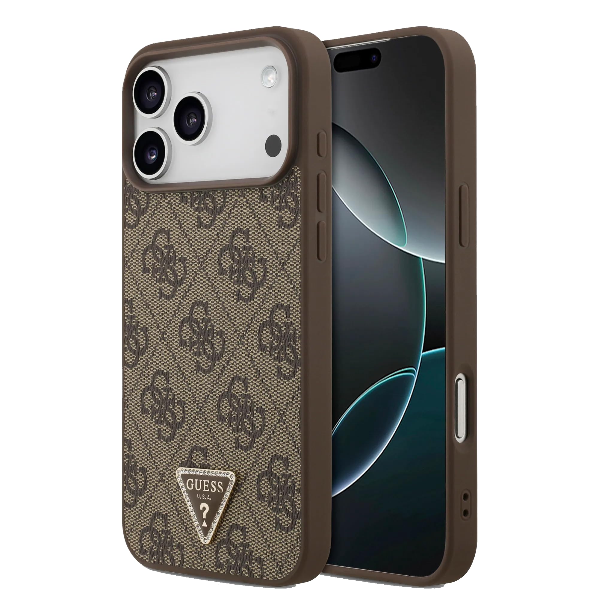 Das Leather 4G Triangle Strass, kompatibel mit MagSafe, ist eine exklusive Schutzhüllen-Serie, die außergewöhnliche Funktionalität mit stilvollem, einzigartigem Design verbindet. Diese Kollektion wurde für alle entwickelt, die nicht nur Wert auf die Sicherheit ihres Smartphones, sondern auch auf ein stilvolles Erscheinungsbild legen. Diese exklusive Schutzhülle der renommierten Marke Guess vereint Eleganz und Stil auf höchstem Niveau. Sie ist mit hochwertigem Öko-Leder bezogen und mit dem legendären 4G-Muster bedruckt. Ein Guess-Logo-Emblem an der Unterseite der Hülle unterstreicht dezent das Prestige der Hülle. Diese perfekte Kombination aus Funktionalität und elegantem Design sorgt dafür, dass Ihr Smartphone nicht nur gut geschützt ist, sondern auch zu einem modischen Accessoire wird. Dank der sorgfältig gewählten Abmessungen dämpft die Hülle Stürze effektiv ab und bietet gleichzeitig vollen Zugriff auf Anschlüsse und Tasten. Die Seiten der Hülle sind flexibel genug, um ein einfaches Anbringen und Entfernen zu ermöglichen und vor allem den Geräterahmen perfekt vor Stößen und möglichen Beschädigungen zu schützen. Leicht erhöhte Außenkanten schützen das Display des Smartphones vor Beschädigungen, während erhöhte Außenkanten um das Kameraobjektiv die Optik vor Bruch und Kratzern schützen. Die Hülle ist mit einem Magnetring ausgestattet, der mit kabellosen Ladegeräten kompatibel ist und schnelles und einfaches Laden ermöglicht. Die integrierten Magnete sind perfekt auf das Smartphone ausgerichtet und sorgen für eine starke Haftung am Ladegerät und Zubehör.