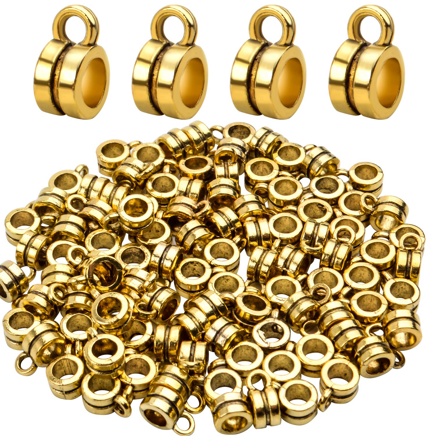 Aylifu 100pcs Bails Beads, 9mm x 6mm x 4mm, tube hole 3mm, Antique Gold