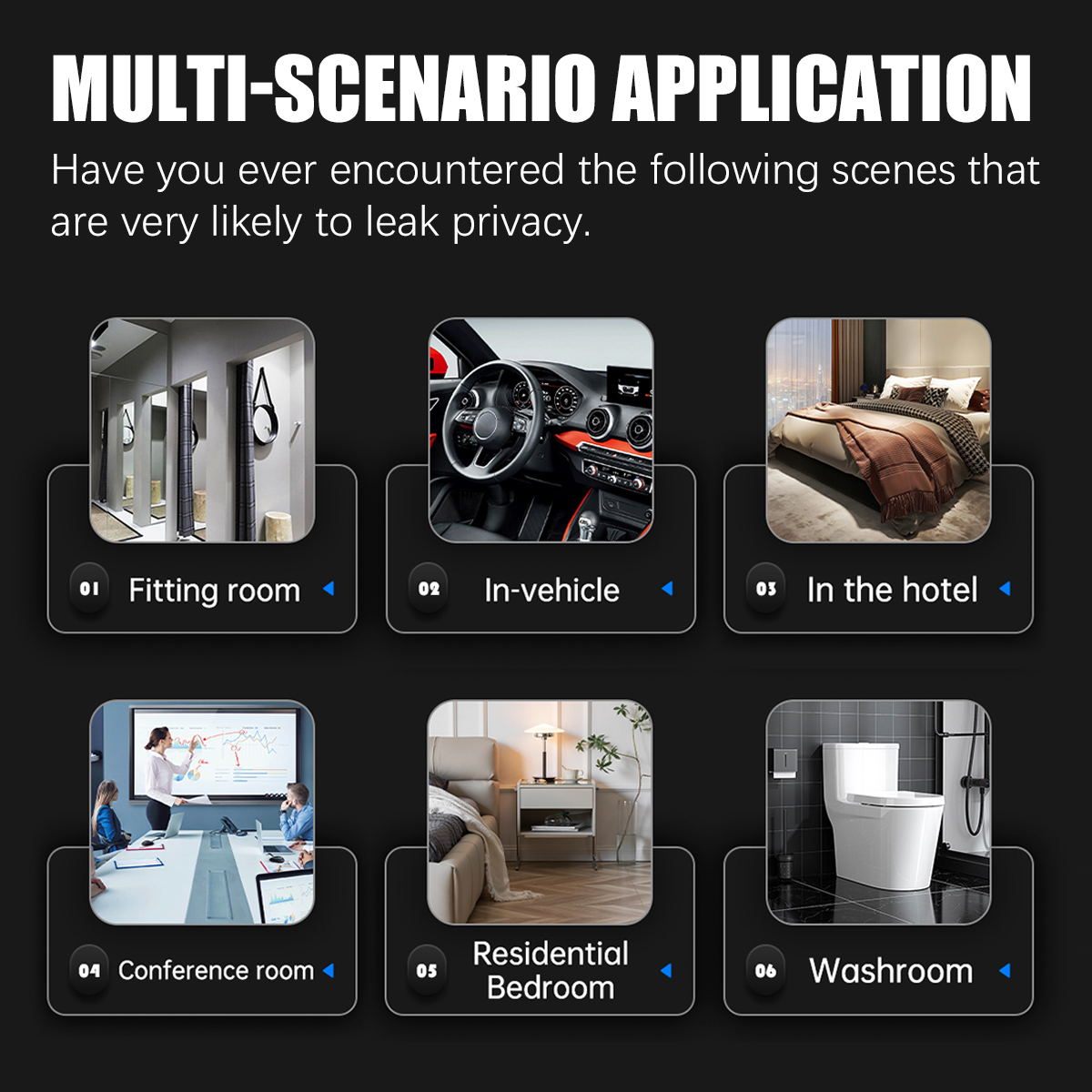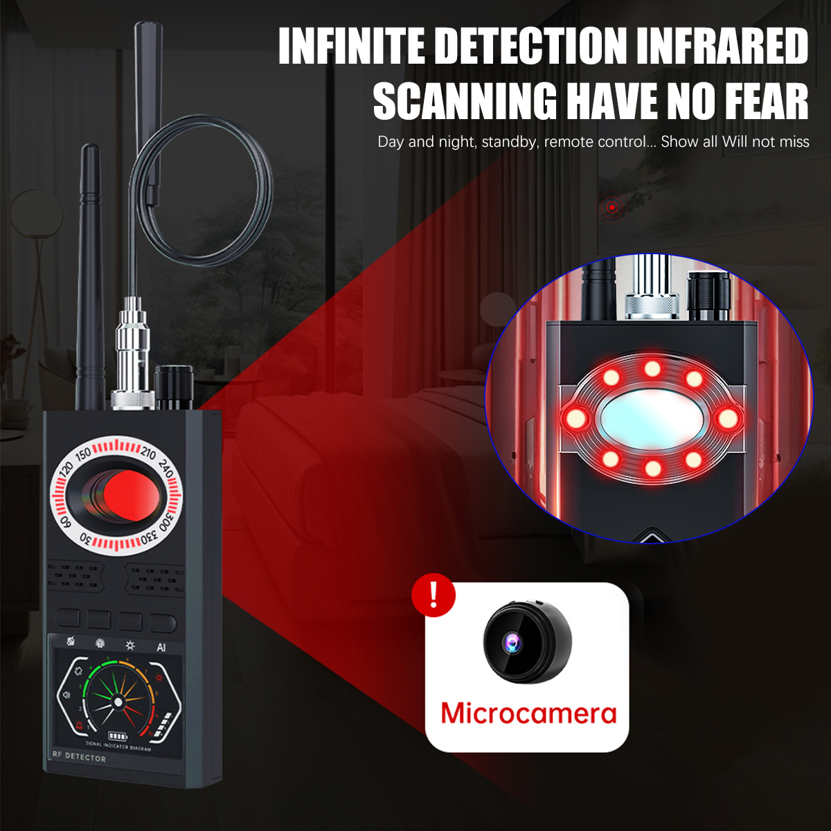 ✅【Lightweight and durable】The invisible camera detector won't weigh you down. With its efficient design, our detector provides a simple and hassle-free experience and is very easy to carry and use. You can use it in locker rooms, conference rooms, bathrooms, hotels, rental houses, offices and many other places to protect your personal privacy and important information anytime and anywhere