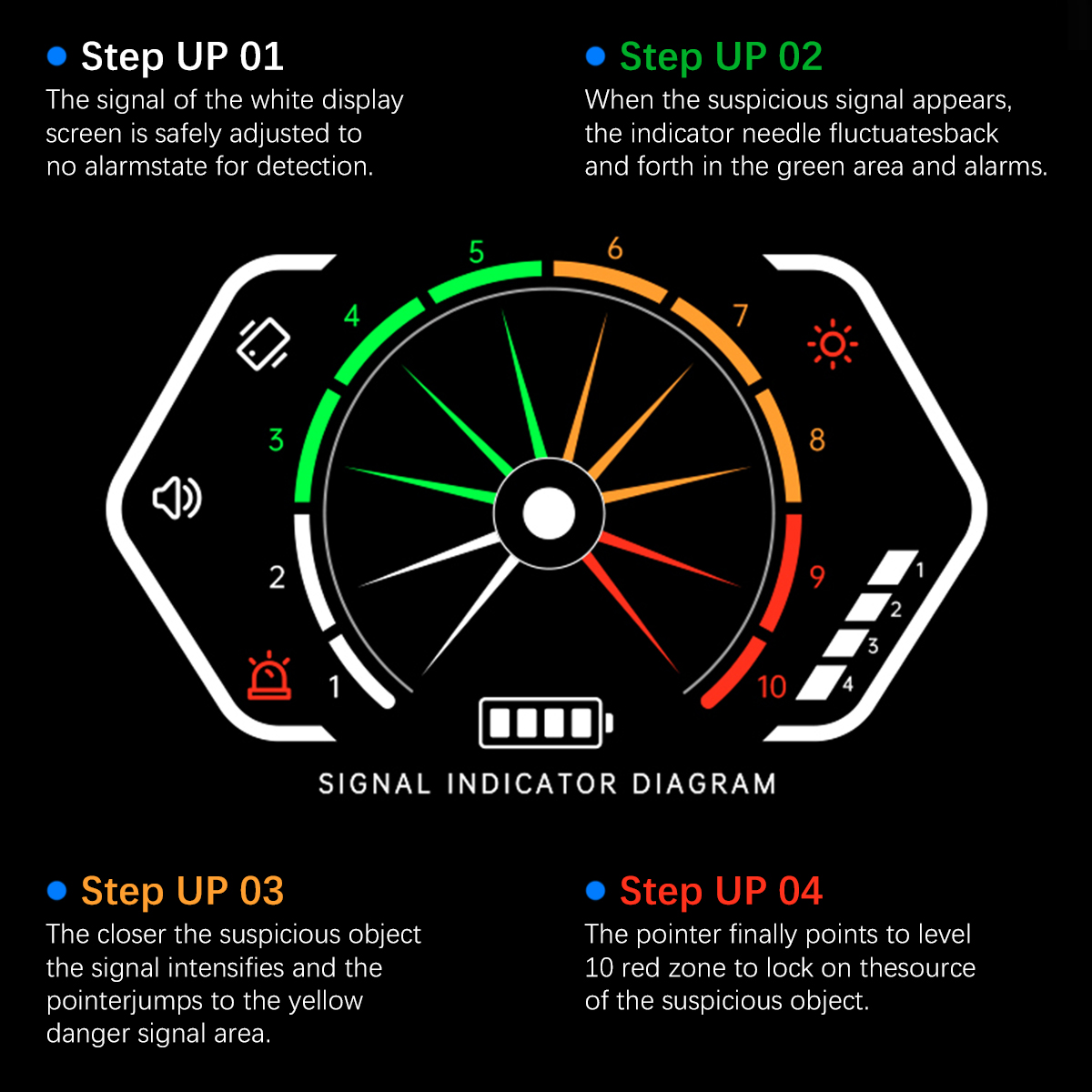 ✅【Multi-Function Hidden Camera Detector】Hidden device detector has powerful detection functions: 1. Hidden camera detector: can detect and identify various hidden cameras in your life; 2. Radio frequency detector: detect active radio frequency bugs Transmitters, such as transmitting cameras, GPS trackers, wireless audio errors; 3. Magnetic field detection: can detect the presence of the magnetic field generated by the GPS tracker. 4. Night Vision Camera Detection: Find hidden cameras with night vision capabilities