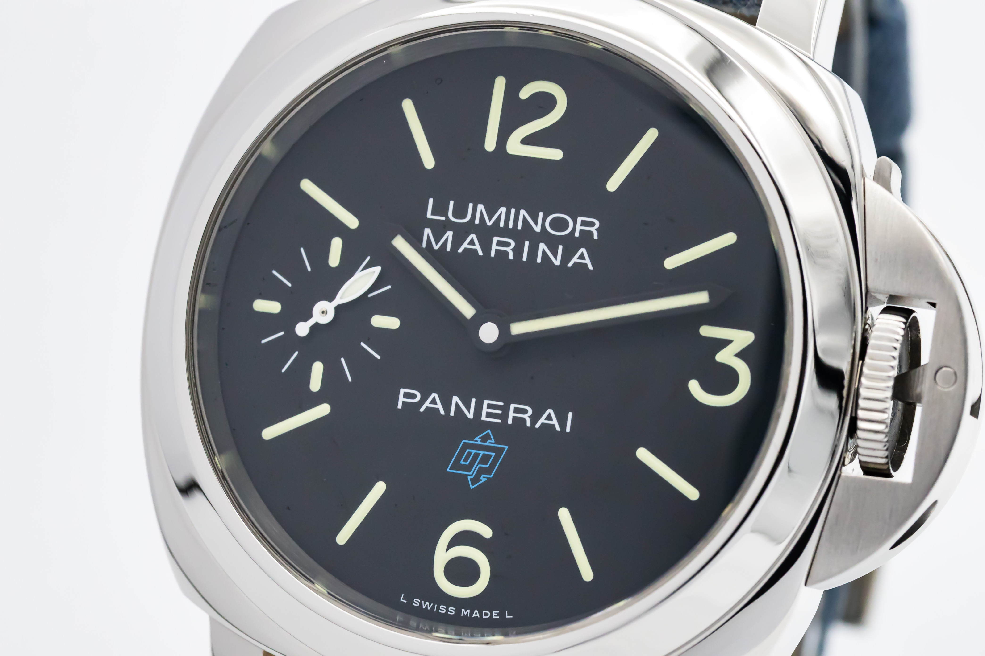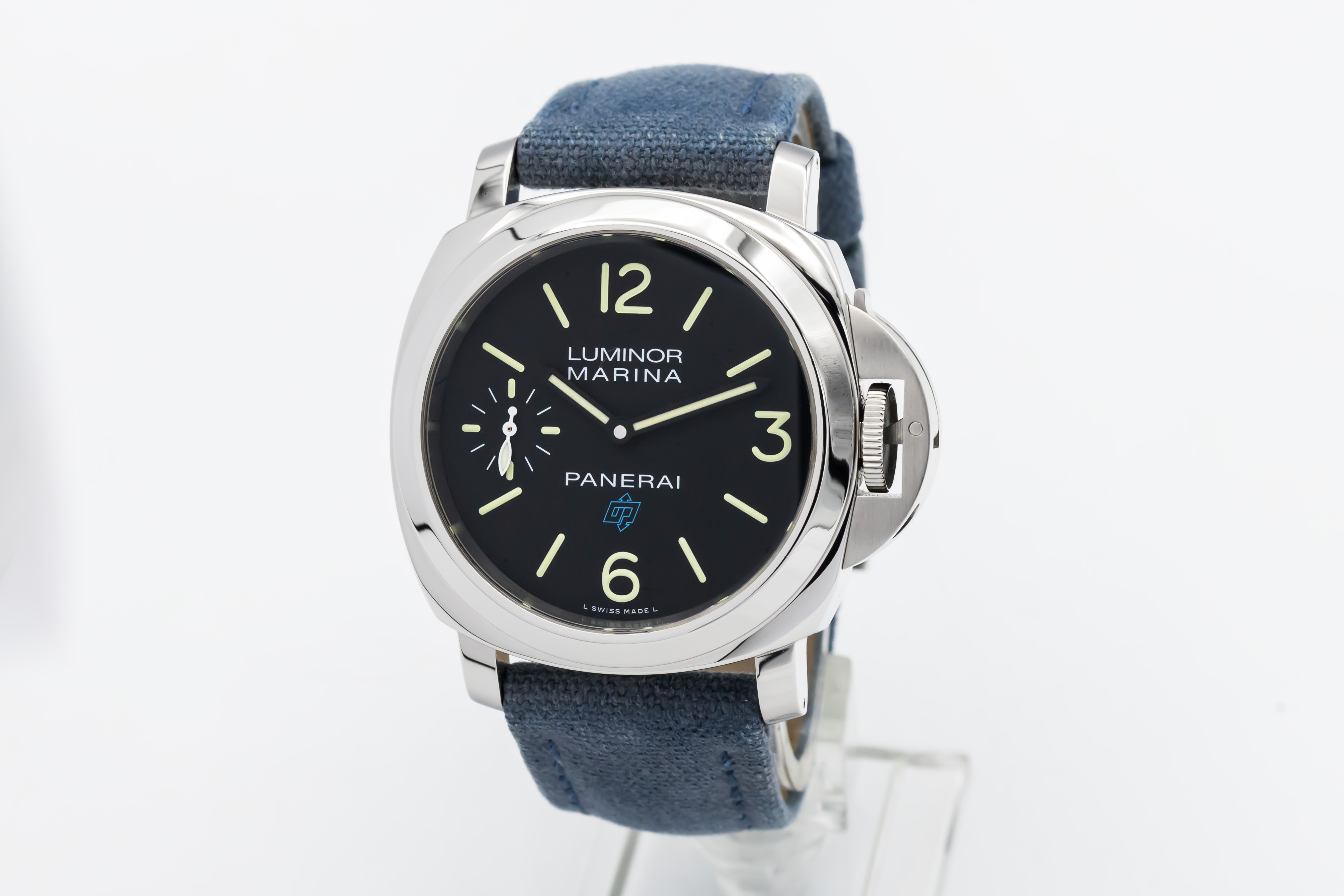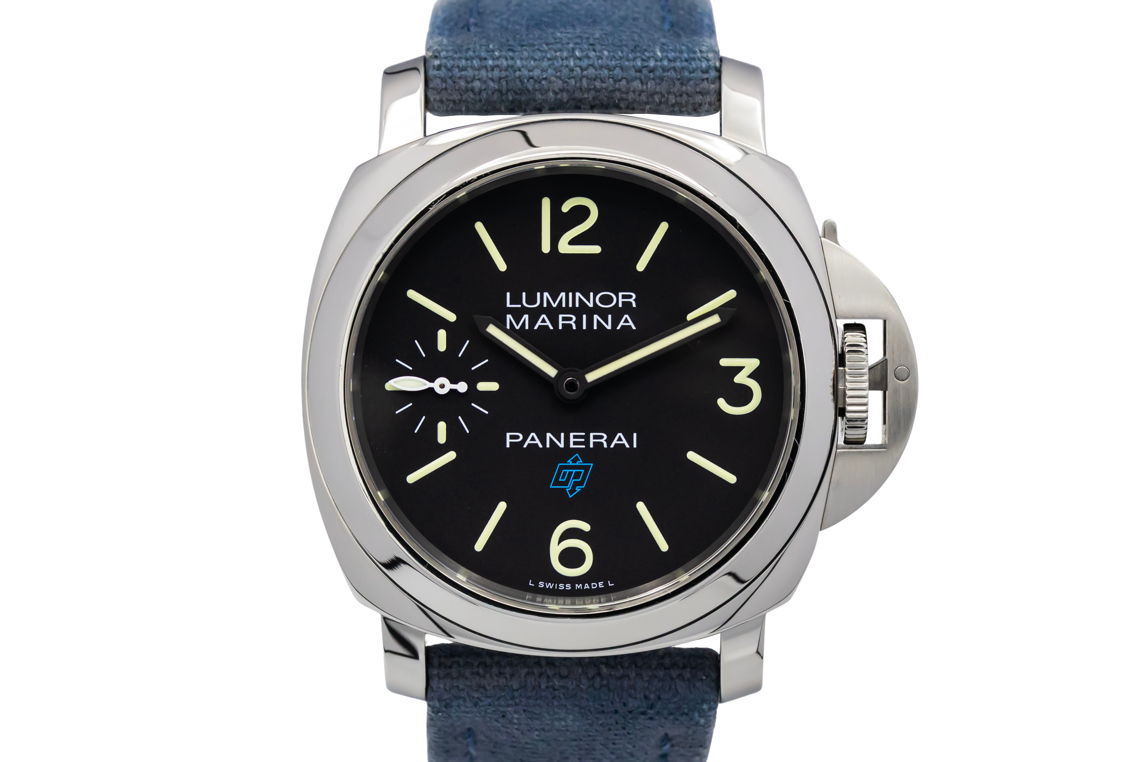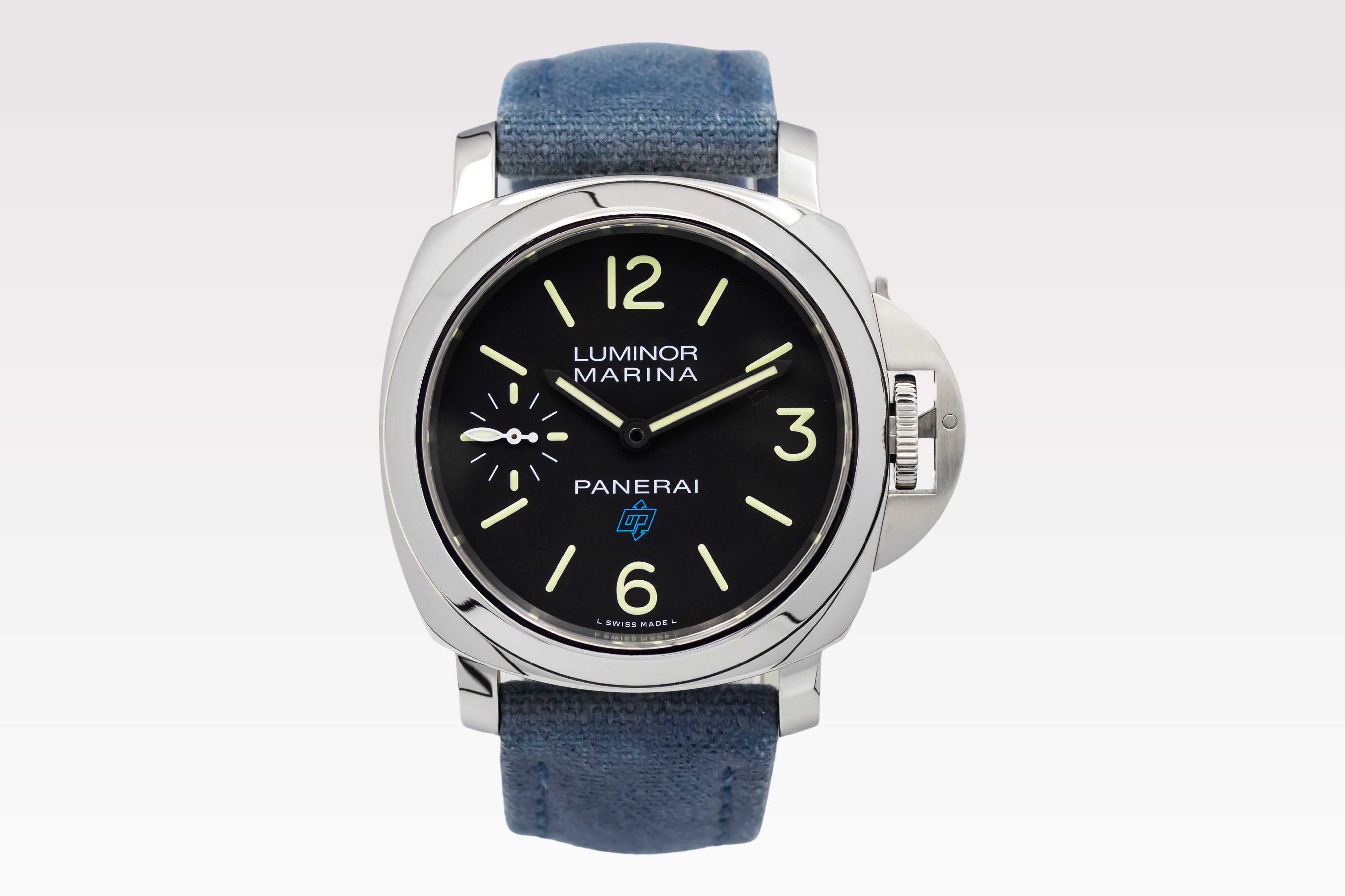 This 2019 Panerai Luminor Marina 44mm is a bold stainless steel timepiece featuring a black sandwich dial with luminous Arabic numerals and small seconds at 9 o’clock. The iconic cushion case and crown guard define its design, fitted on a blue fabric strap.The Luminor Marina is rooted in Panerai’s military heritage, originally developed for the Italian Navy. The PAM00777 combines this history with a clean, minimalist design and manual-wind movement.This watch has been checked against technical records to guarantee authenticity and clean history. Comes with original box and papers. Ref: PAM00777
