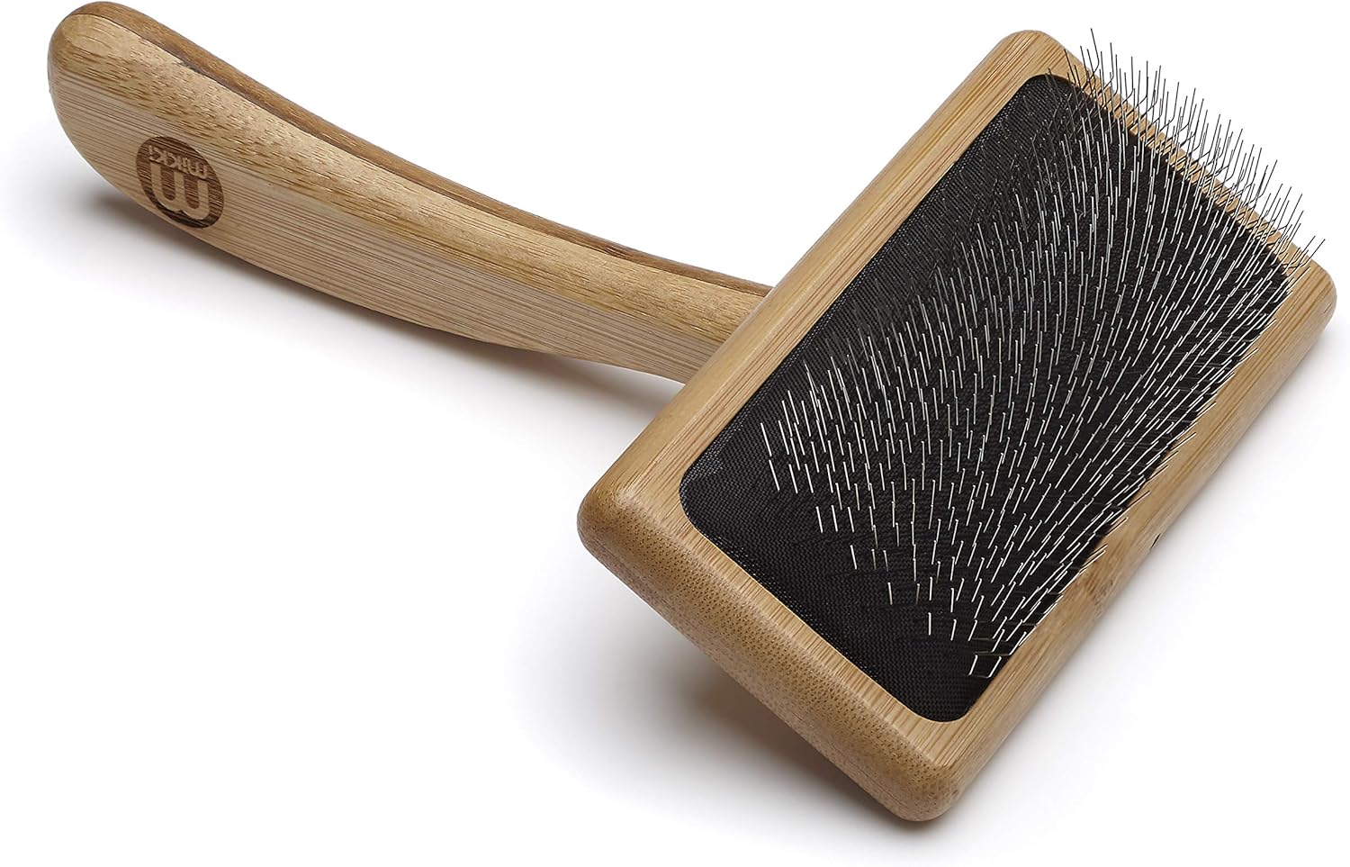Mikki Bamboo Soft Pin Slicker Brush for Dog, Cat, Puppy, for Medium, Long and Curly Coats, Removes Knots, Tangles, Dead Hair, Handmade from Natural Bamboo, Medium