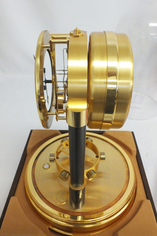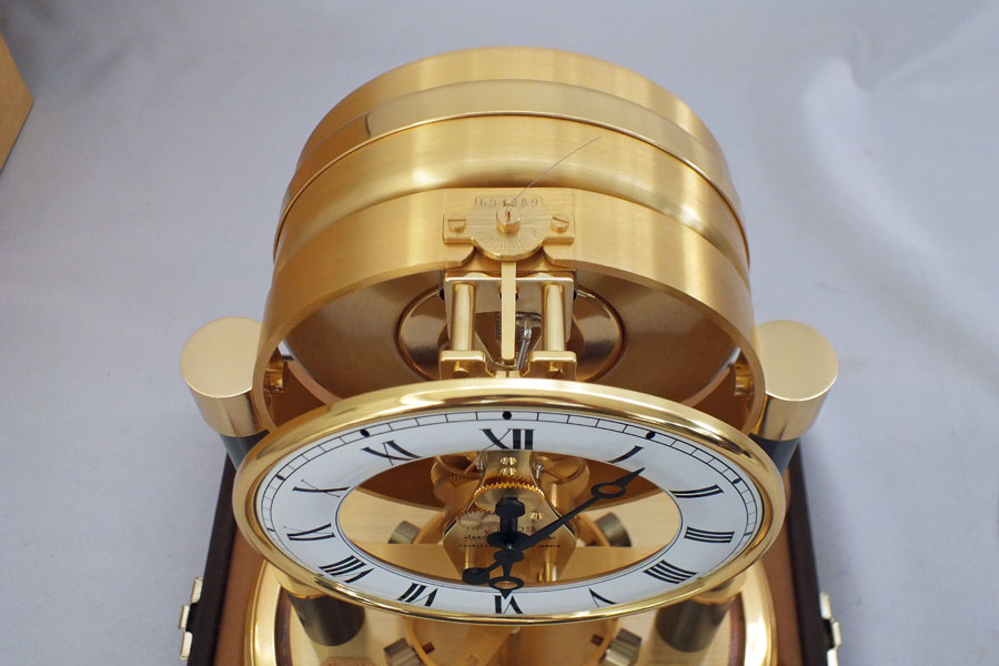 This special clock runs on air pressure and is known as a mechanical torsion pendulum clock. A special bellows system moves with the difference in atmospheric pressure and room temperature. That change in pressure is caught in the bellows and the stored power is used to run the clock. It’s the closest thing to perpetual motion that has ever been built and requires very little intervention or winding if at all.