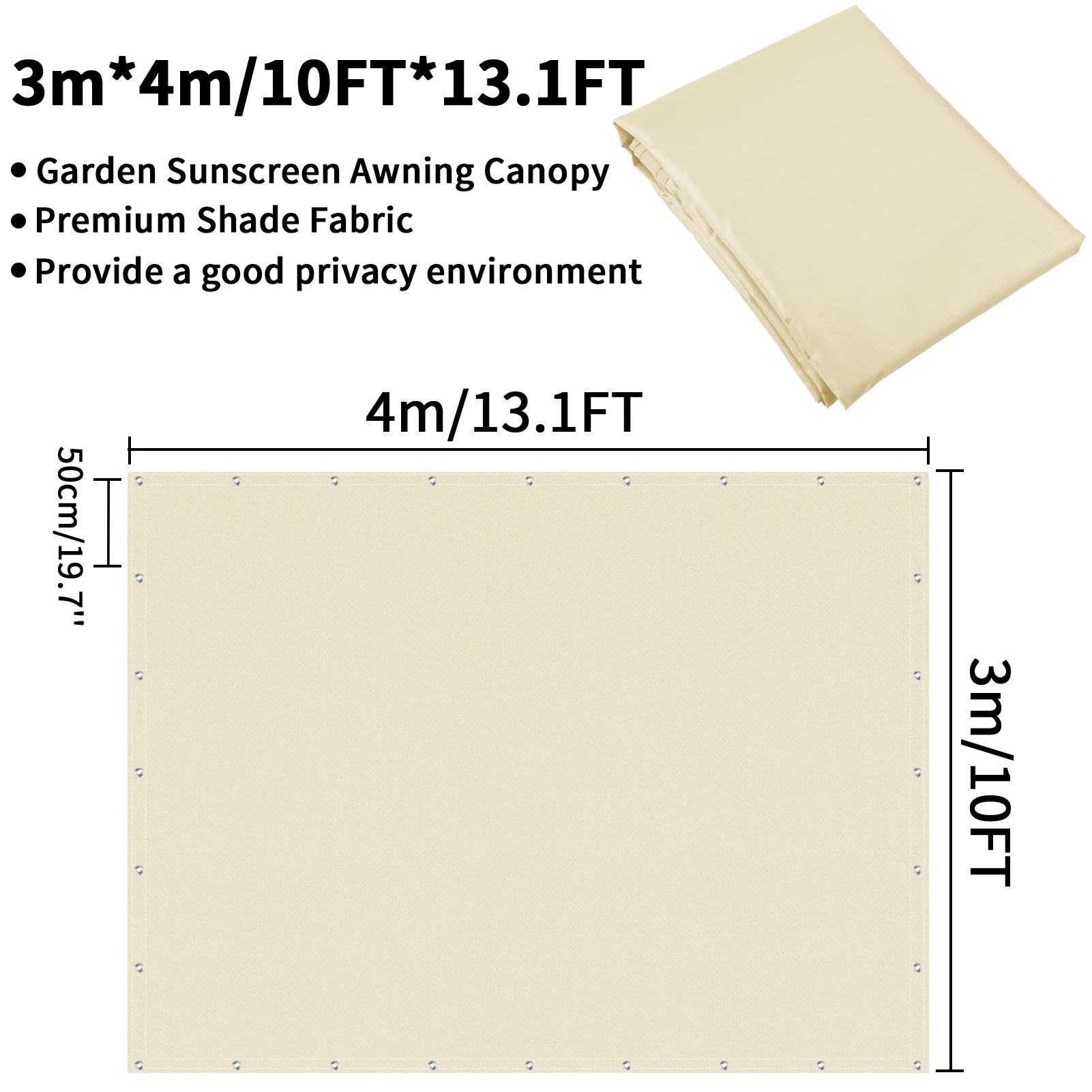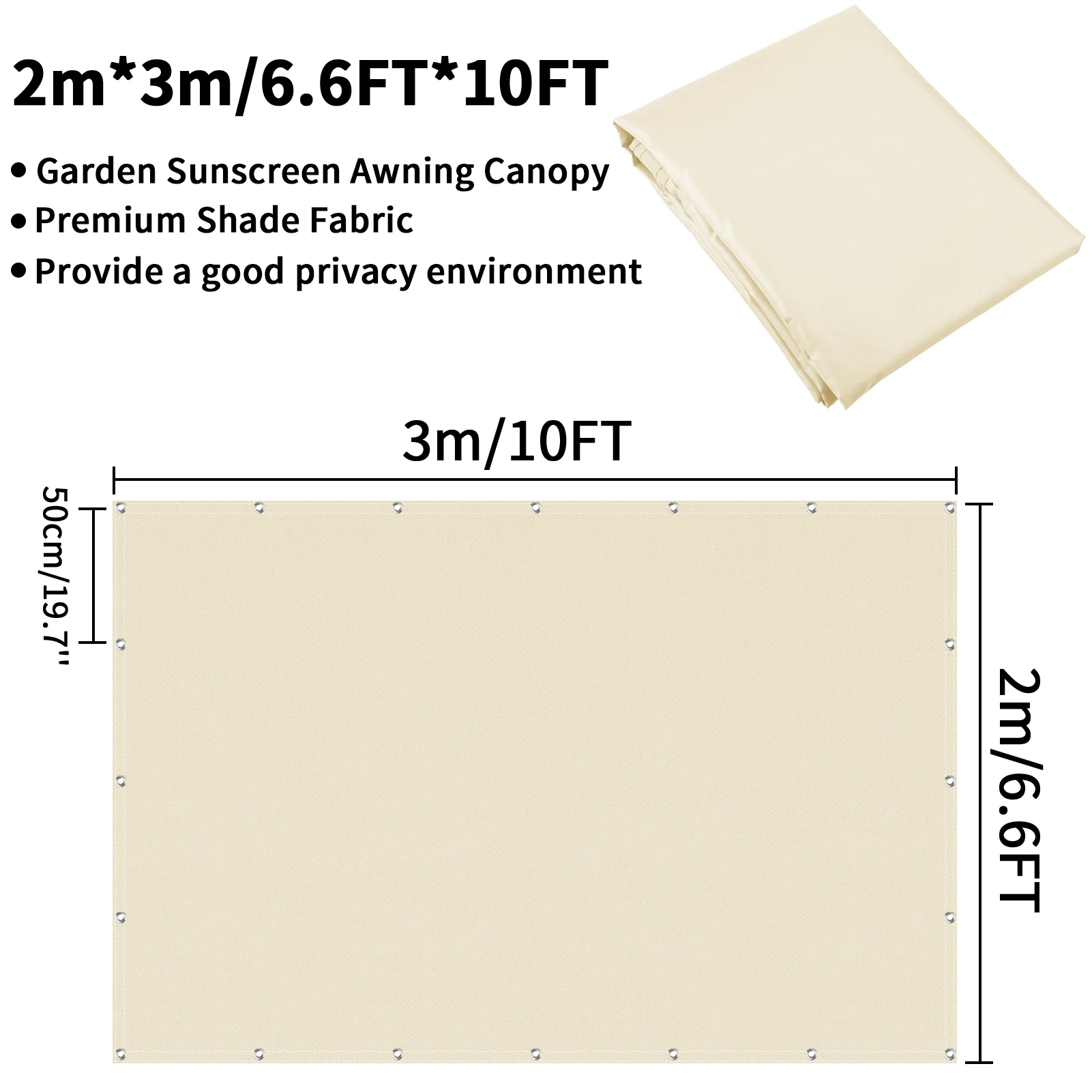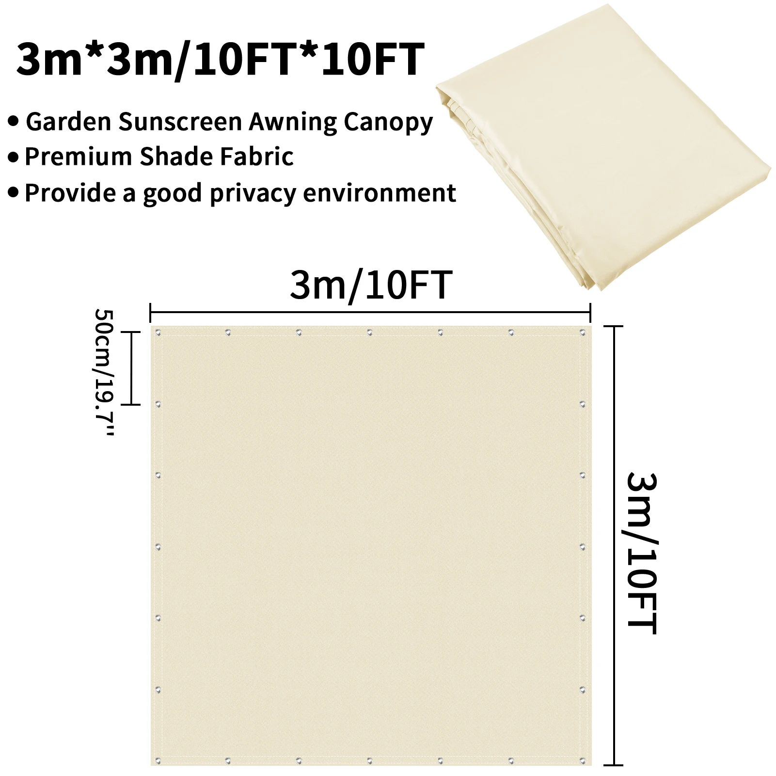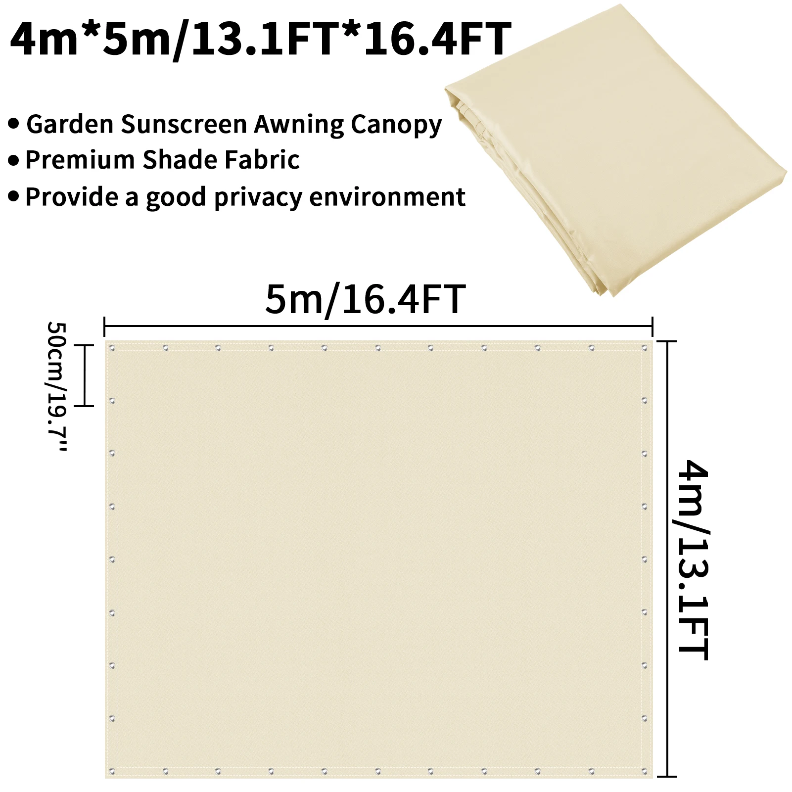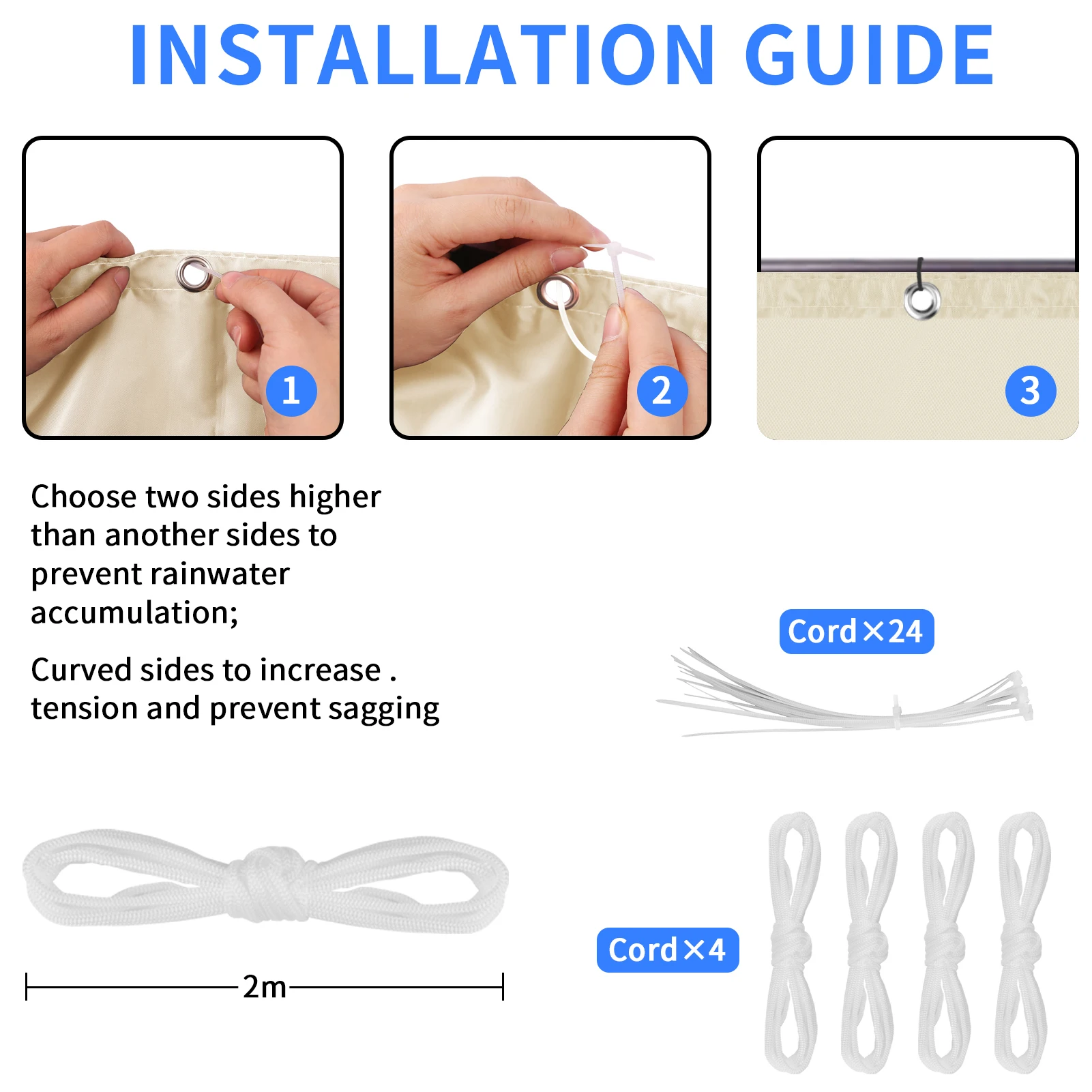 Easy to install: The aluminum eyelets sewn every 50 cm at the top and bottom ensure maximum stability. You can use ropes and installation kits to install them easily and safely. With this simple installation method, you can install shade sails on walls, fences, pillars and even trees.