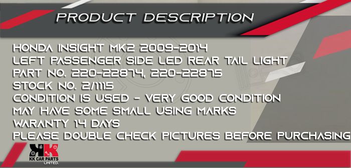 HONDA INSIGHT MK2 2009-2014 LEFT PASSENGER SIDE REAR TAIL LIGHT LED ⭐⭐⭐⭐⭐