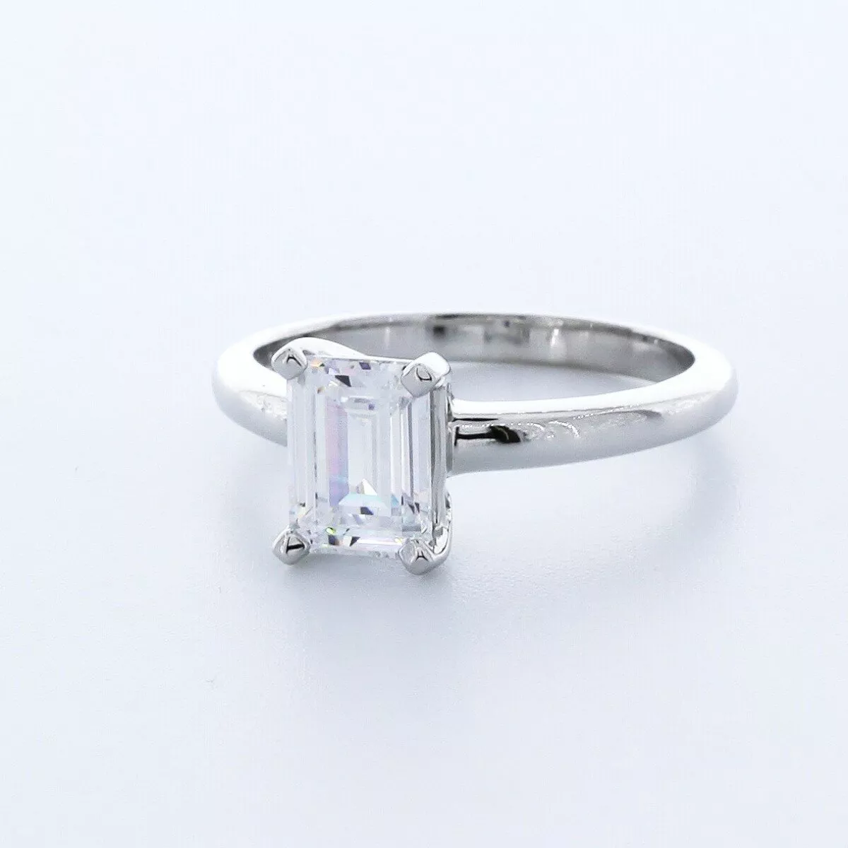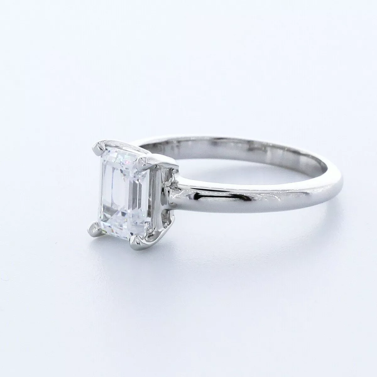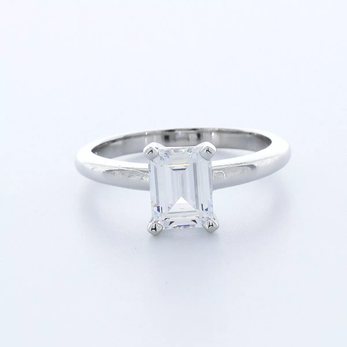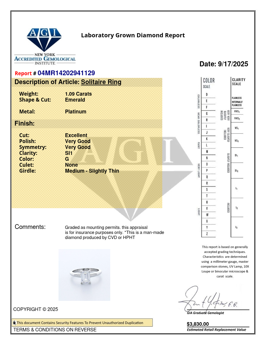 Solid Platinum Solitaire Engagement Ring Classic AGI Cert 1.09 CT Emerald Lab-Grown Diamond G SI1