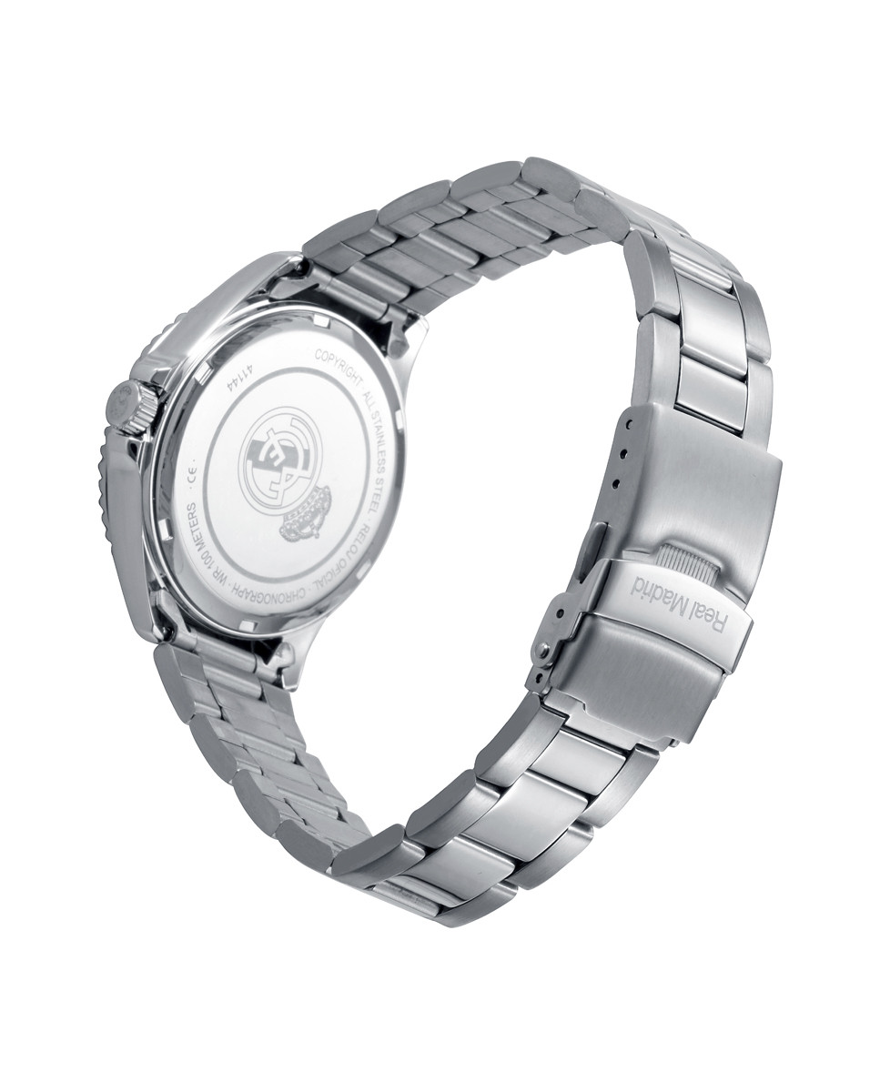 Diese offizielle Real Madrid-Kinderuhr vereint Eleganz und Widerstandsfähigkeit in einem Design für kleine, große Fans. Sie besteht aus Edelstahl, hat ein 37-mm-Gehäuse und ein weißes Zifferblatt, das stolz das Vereinswappen zeigt. Sein Stahlarmband und die Faltschließe mit Druckknöpfen sorgen für einen bequemen und sicheren Sitz.