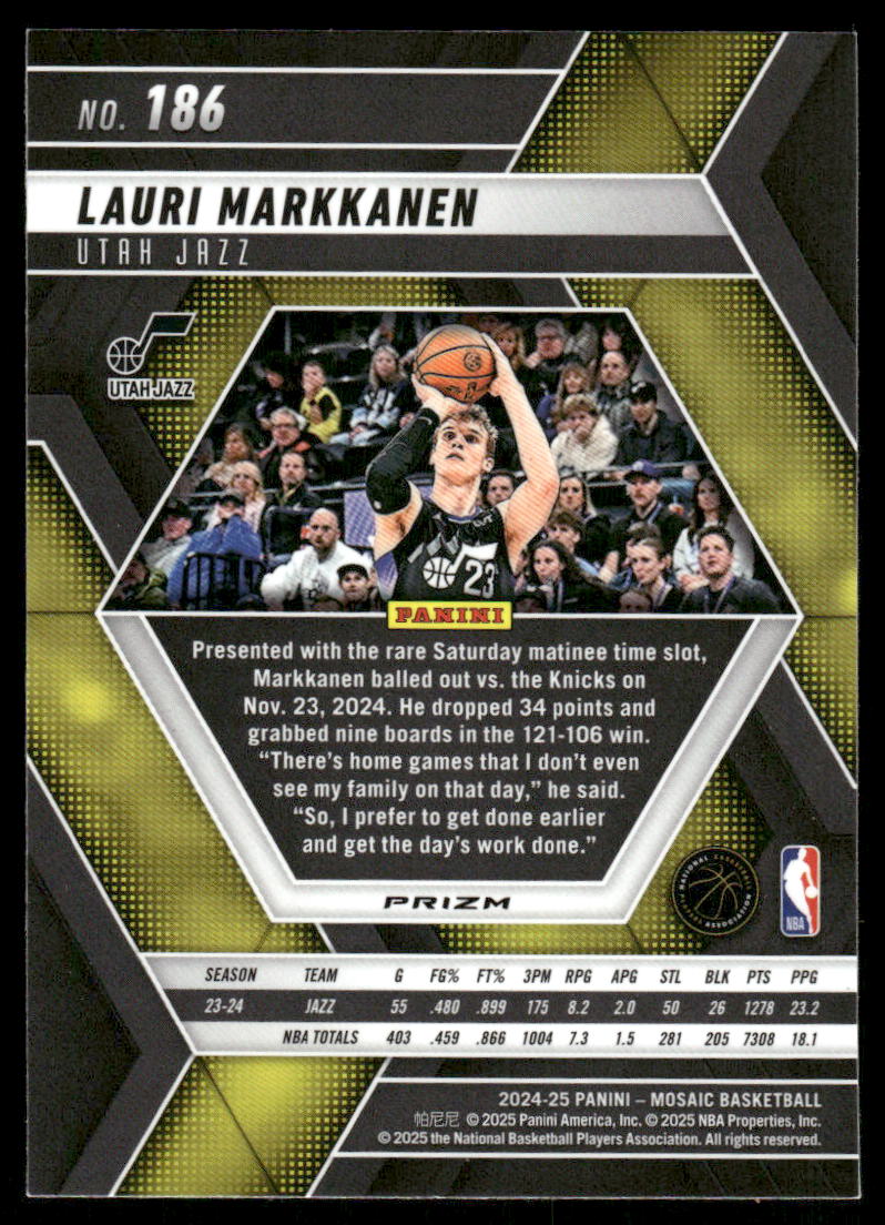 2024-25 Panini Mosaic Mosaic Green #186 Lauri Markkanen - BSK