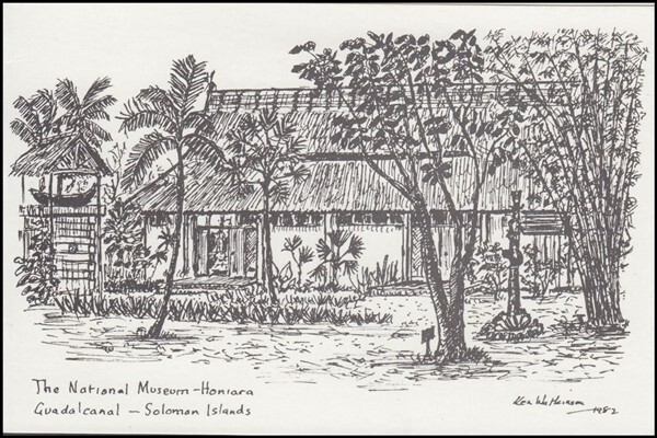DESCRIPTION Seasons Greetings Solomon Islands Phil Bureau National Museum Honiara Card. Stamps pmk 18/10/82. Fine condition.