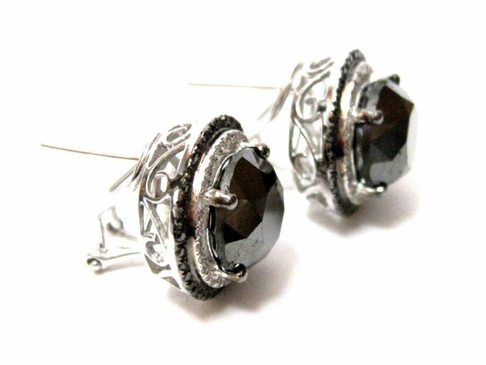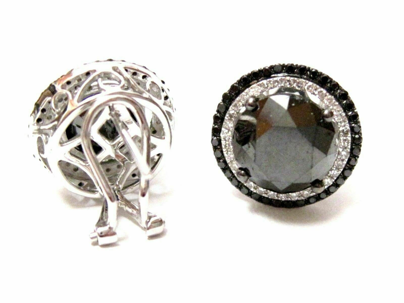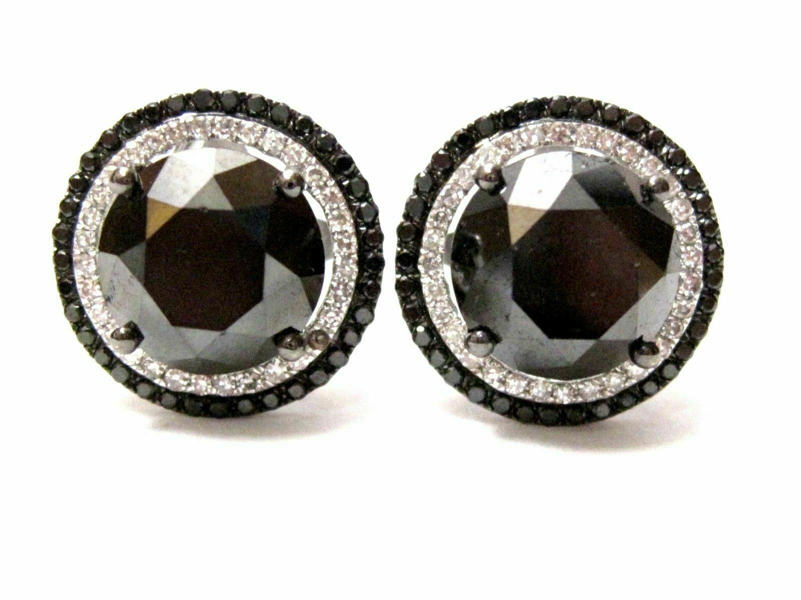 10.70 TCW Natural Round Black Diamond Stud Earrings 18k White Gold Not Enhanced