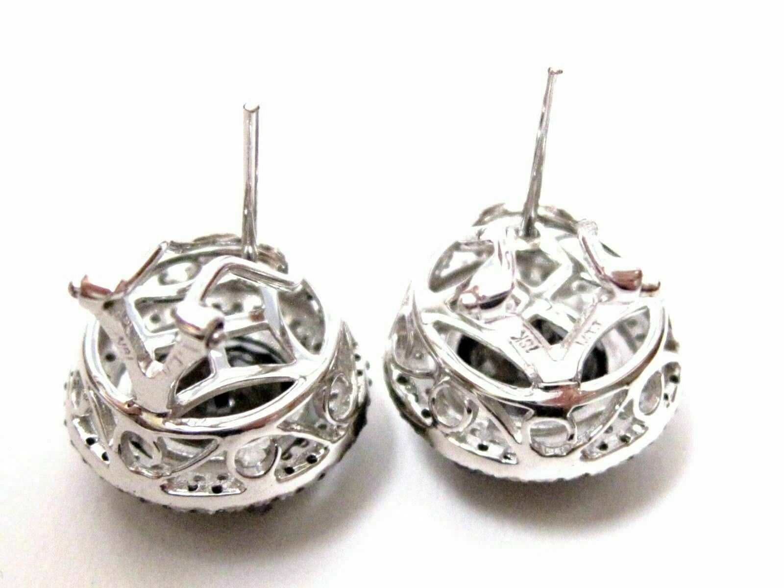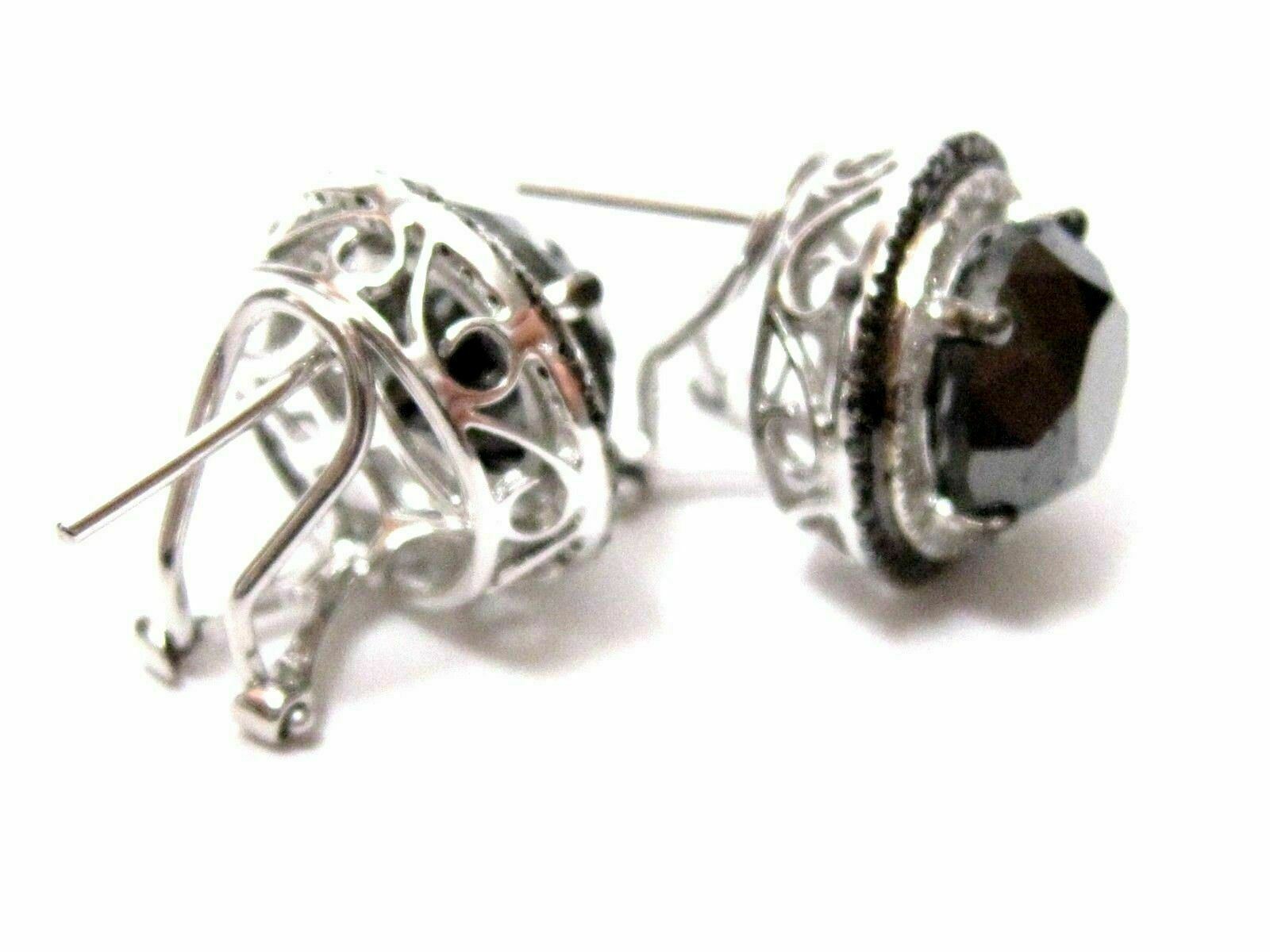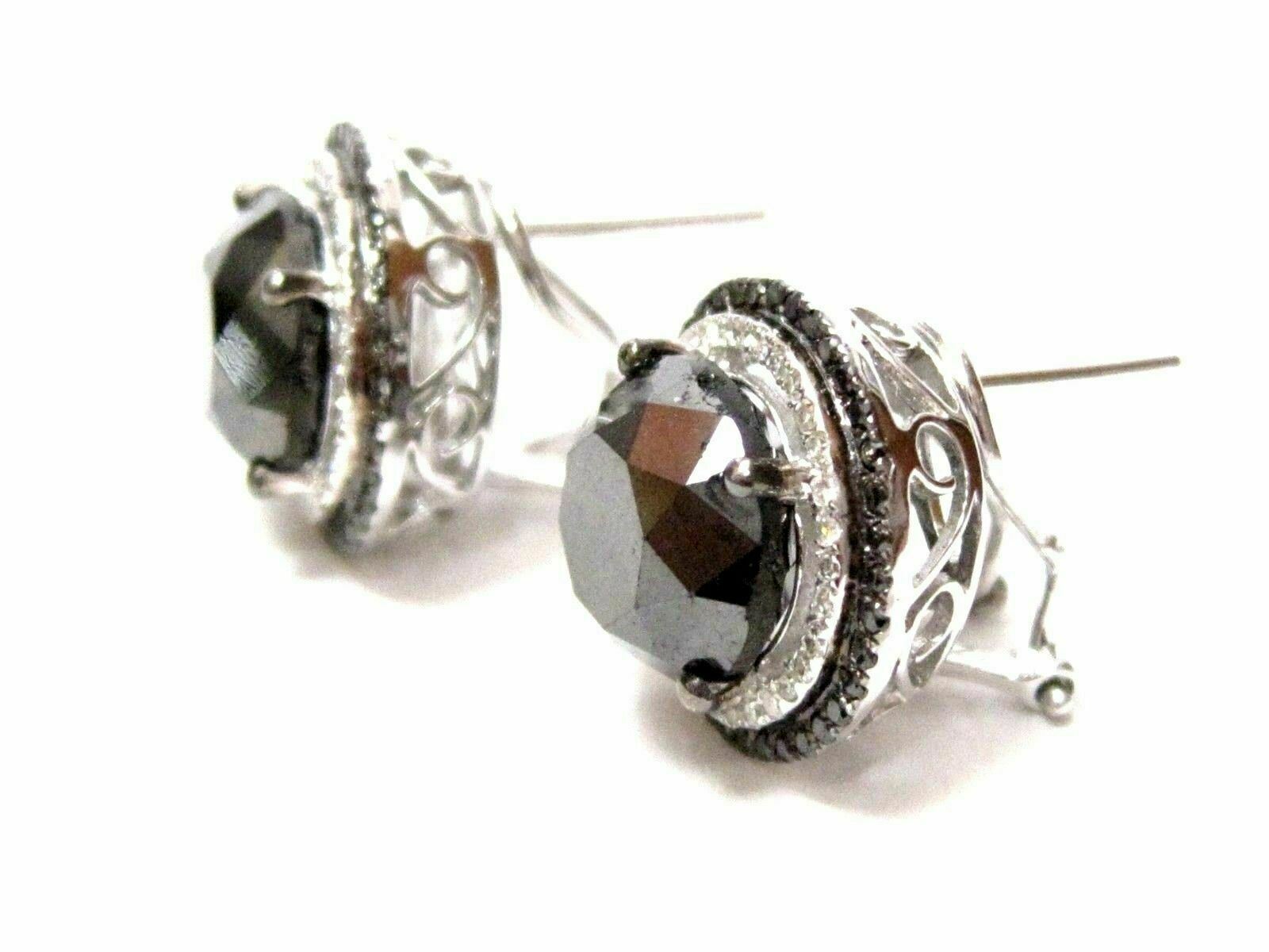 10.70 TCW Natural Round Black Diamond Stud Earrings 18k White Gold Not Enhanced