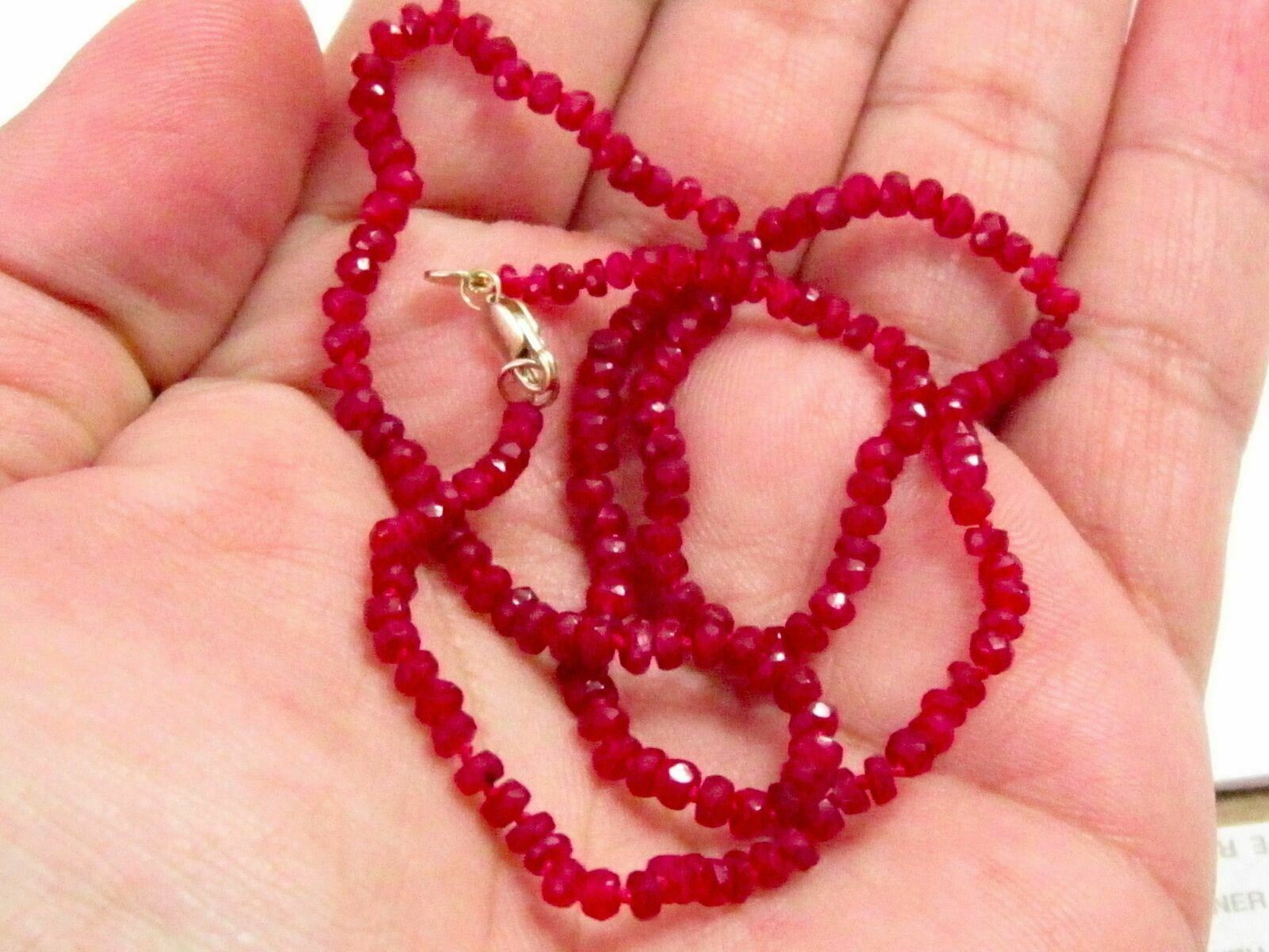 Fine Natural Red Ruby Corundum Bead String Necklace 32 carats 17 Inches Long