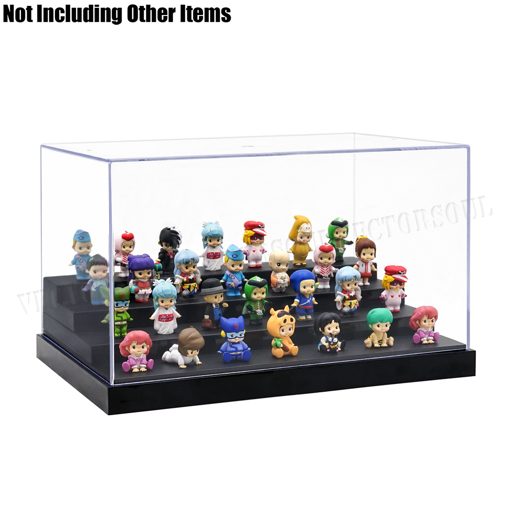 ● Removable steps designed. Display collectibles in a few ways ● Stackable, Dustproof, Self-assembly ● Flat and glossy base, stackable design ● Crystal clear, high-quality strong acrylic plates ● Keep your collectibles dust free |