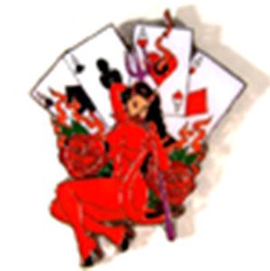 YOU GET ONE OF THESE DEVIL GIRL CARDS HAT OR JACKET PINS
