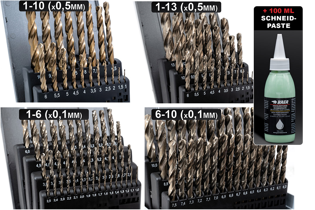 je 1 Stück: 1,0 mm | 1,5 mm | 2,0 mm | 2,5 mm | 3,0 mm | 3,5 mm | 4,0 mm | 4,5 mm | 5,0 mm | 6,0 mm | 6,5 mm | 7,0 mm | 7,5 mm | 8,0 mm | 8,5 mm | 9,0 mm | 9,5 mm | 10,0 mm | 10,5 mm | 11,0 mm | 11,5 mm | 12,0 mm | 12,5 mm | 13,0 mm | 100 ml Schneidpaste