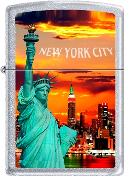Zippo New York City Statue Of Liberty Skyline Satin Chrome Windproof Lighter