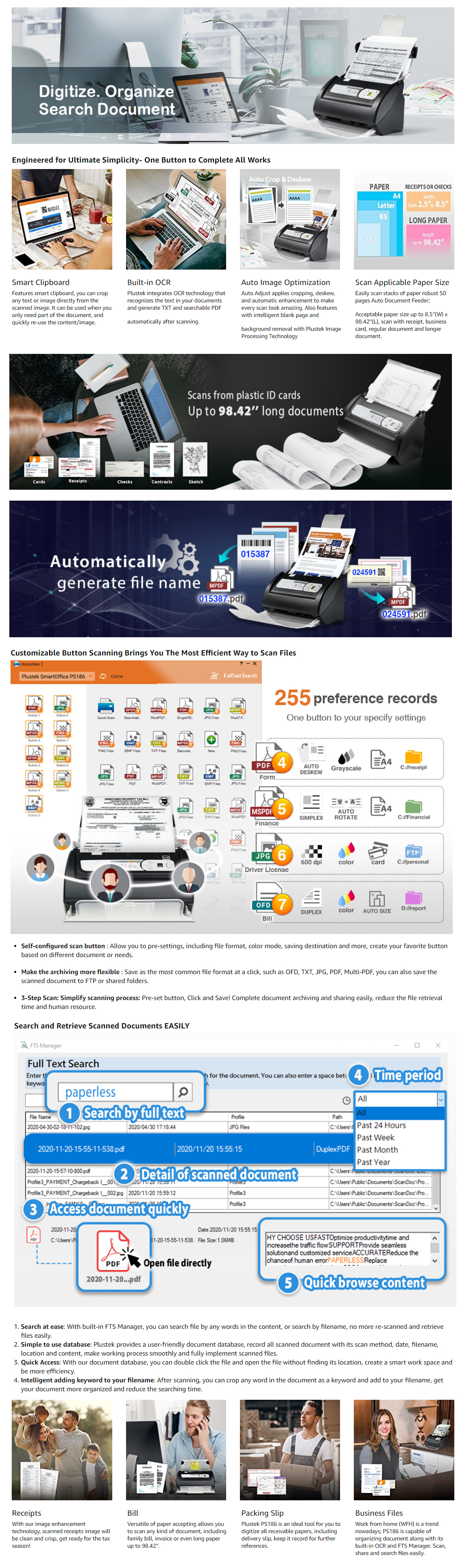 Up to 255 customize favorite scan file setting with "Single Touch" , Support Windows 7/8/10/11